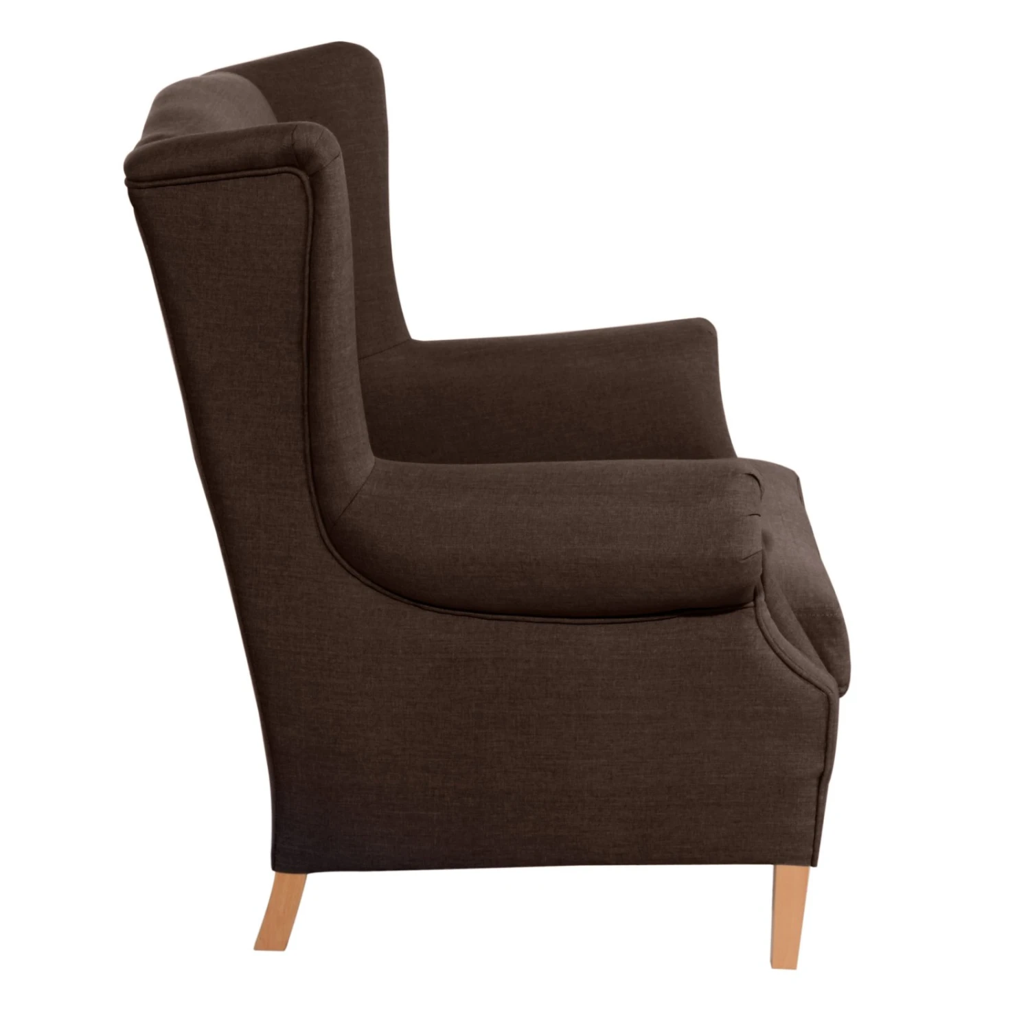 Max Winzer Ohrenbackensessel – schoko – Flachgewebe – Massivholz