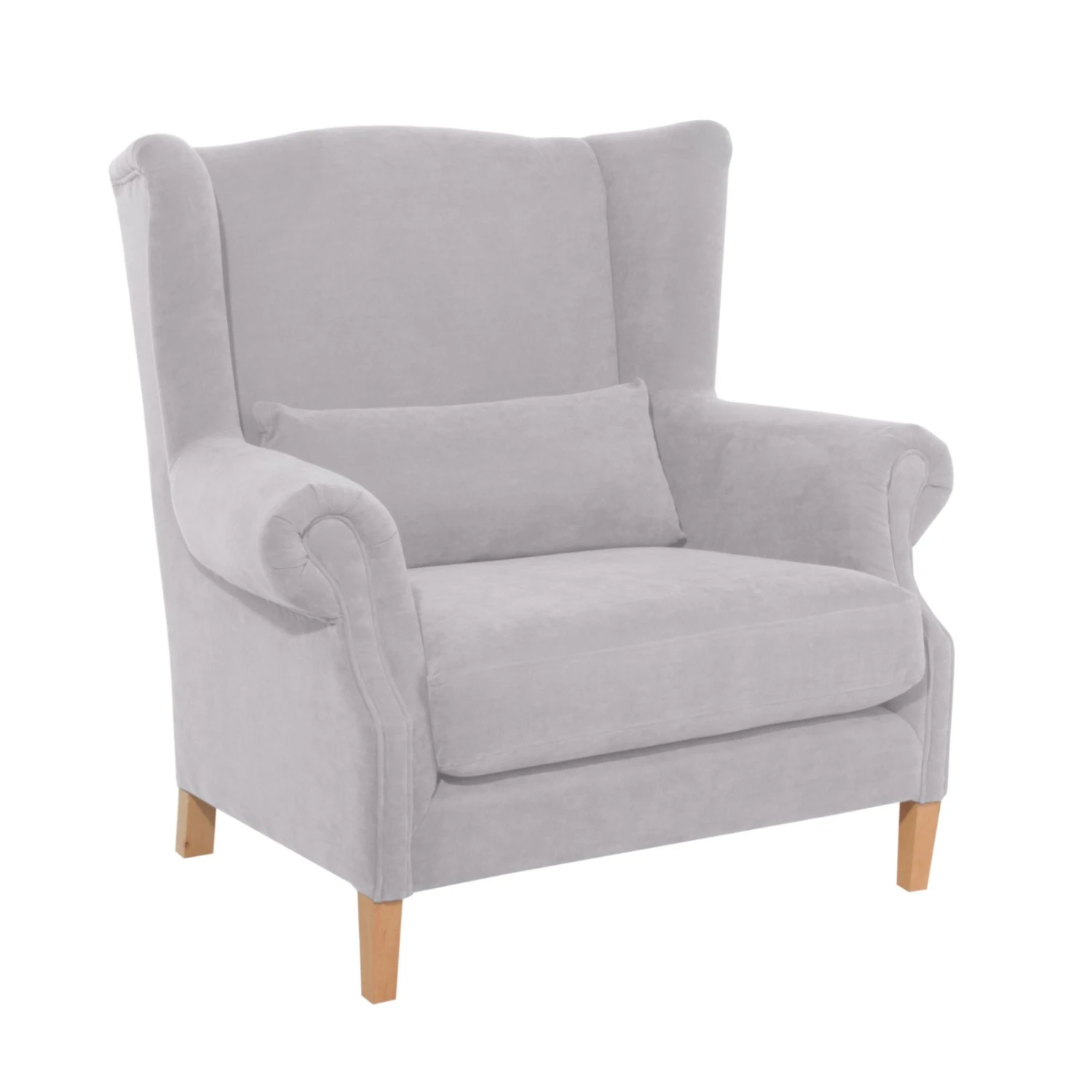 Dieser extrabreite Ohrenbackensessel in Silber überzeugt durch sein trendiges Design. Er verfügt über ein Nierenkissen (ca. 70 x 30 cm) im Rücken. Dadurch kann die Sitztiefe beliebig variiert werden. Die Füße sind zur einfachen Selbstmontage. Der Sessel hat eine optimale Sitzhöhe von 52 cm.