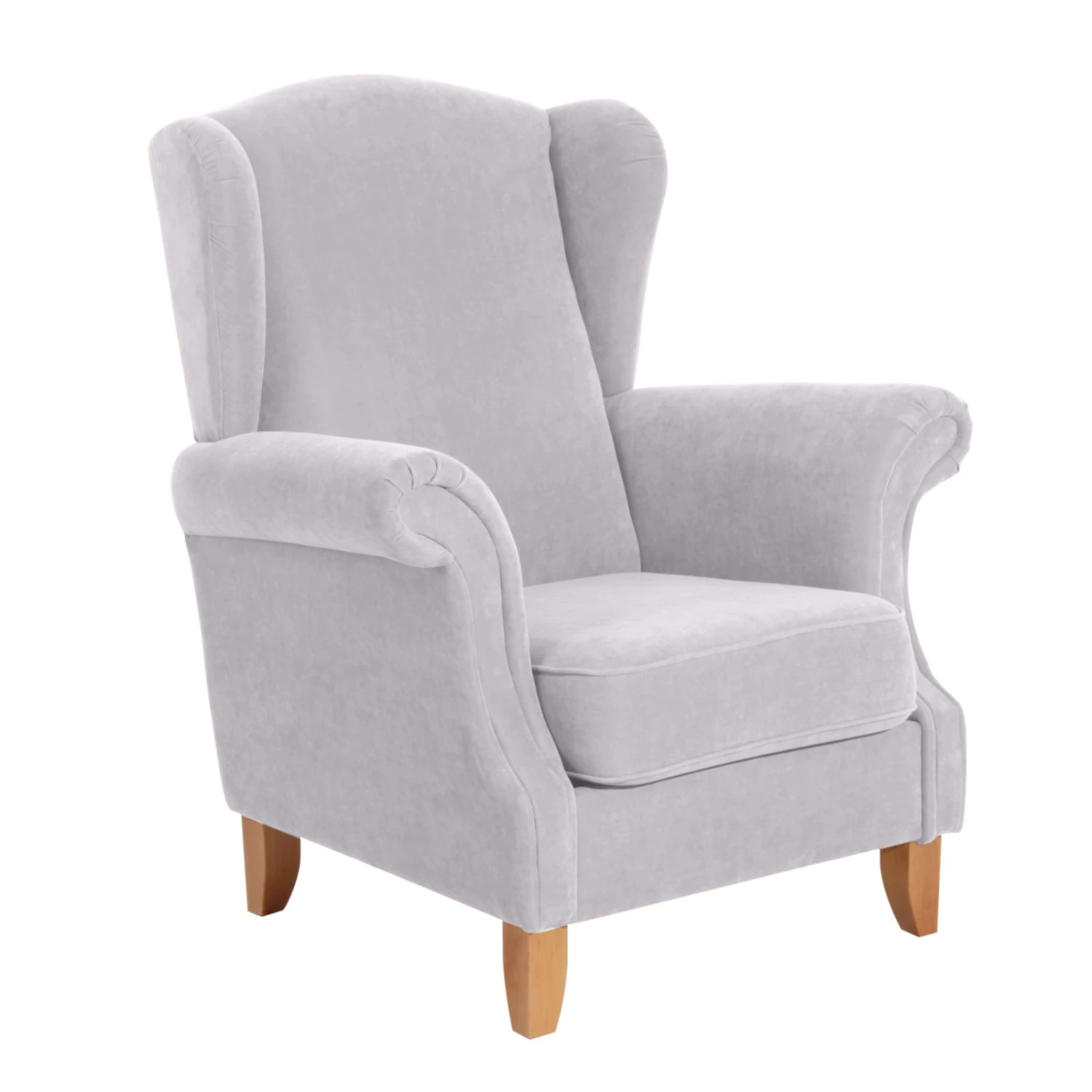 Max Winzer Ohrenbackensessel – silber – Veloursstoff – mit Kissen