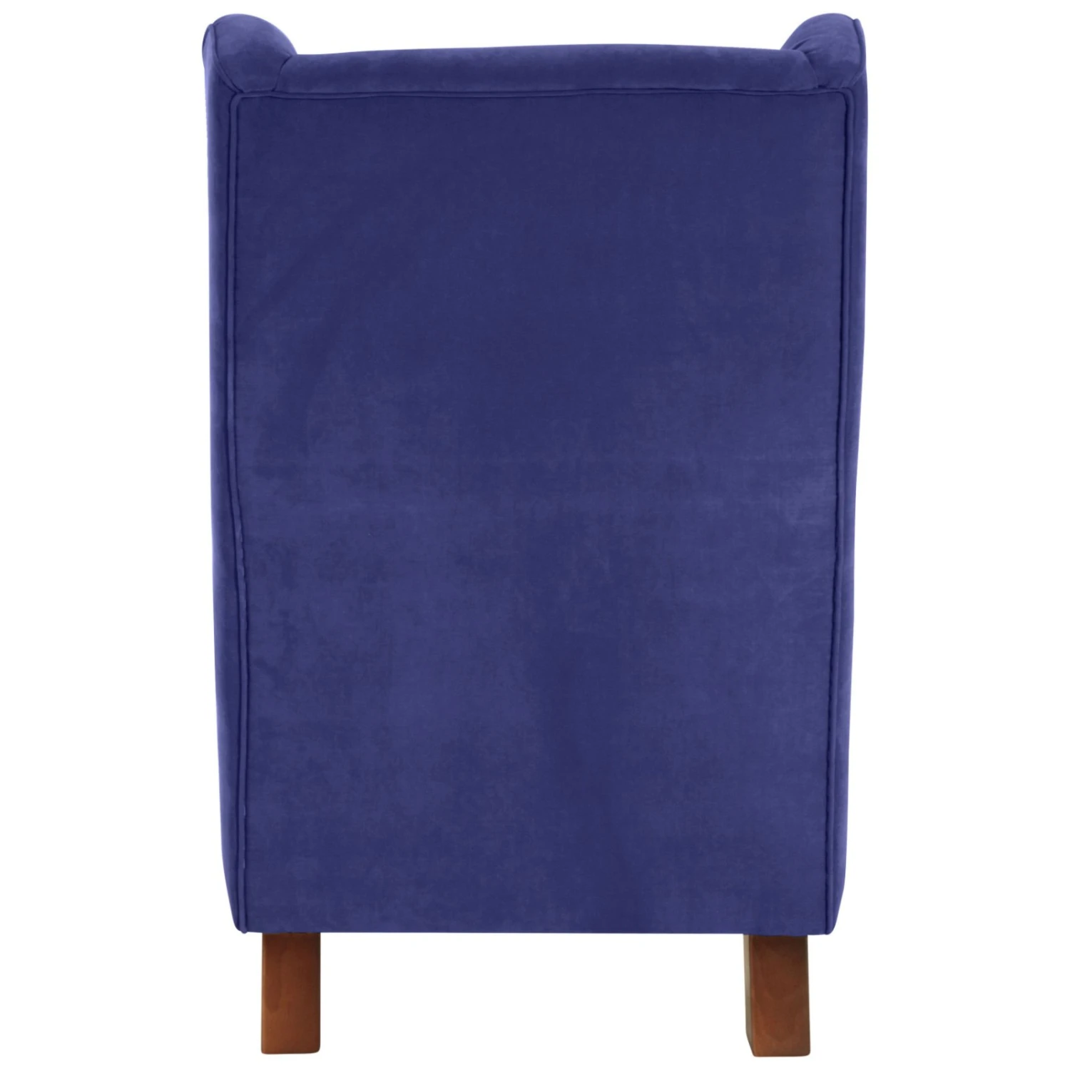Gemütlicher Ohrensessel mit einem flauschig, weichem Bezug aus Veloursstoff in Blau. Der Sessel ist rundherum bezogen und mit einer zierenden Kedernaht versehen, so können Sie ihn auch mitten im Raum platzieren. Die Wellenunterfederung sorgt für den nötigen Komfort durch ihre Stabilität und die Polsterung aus Polyätherschaum für ein angenehmes Klima, da der Schaum atmungsaktiv ist. Genießen Sie schöne Stunden bei einem guten Buch.