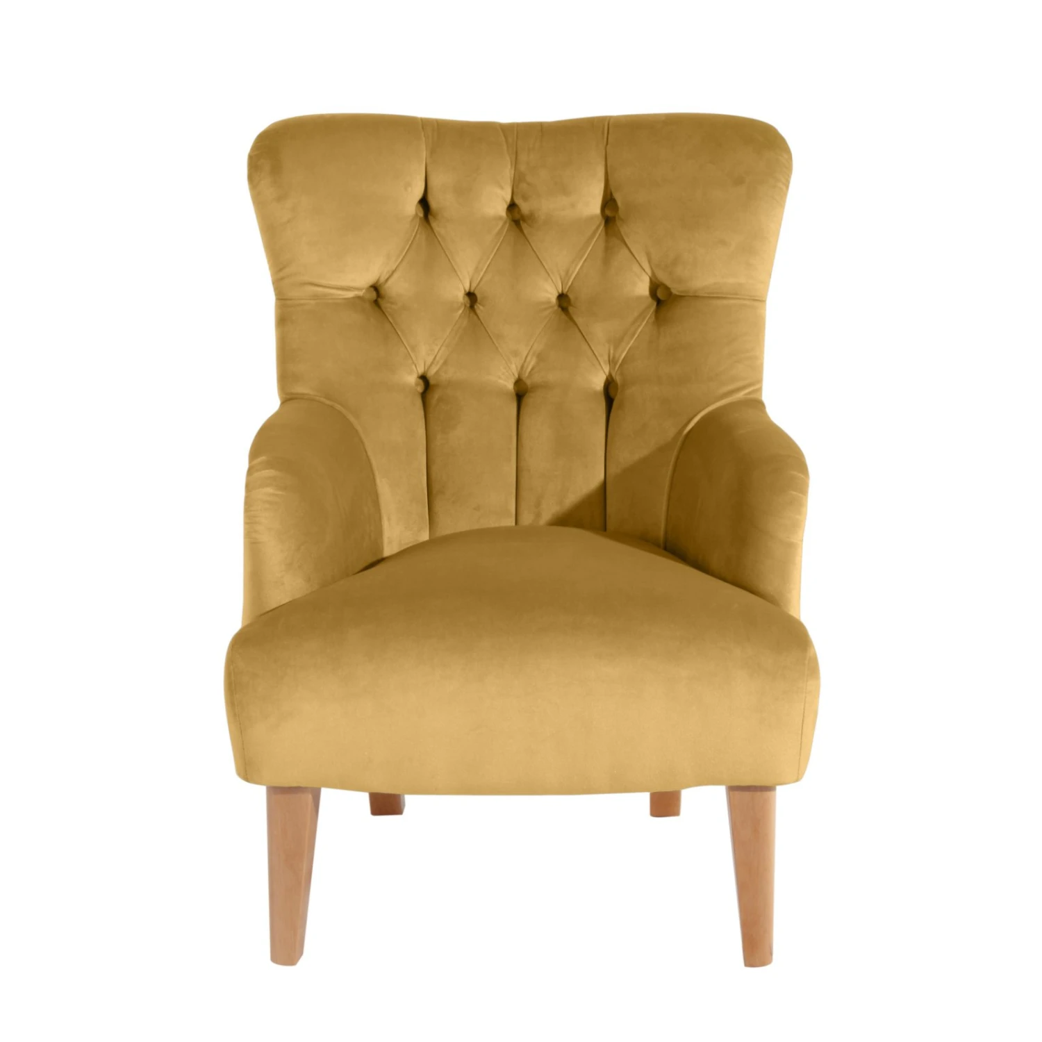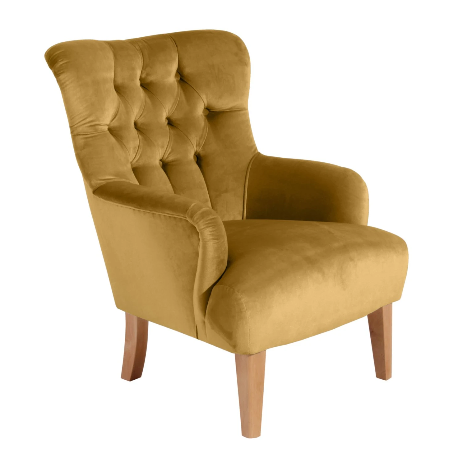 Max Winzer Ohrensessel – mais – Samtvelours – Massivholz