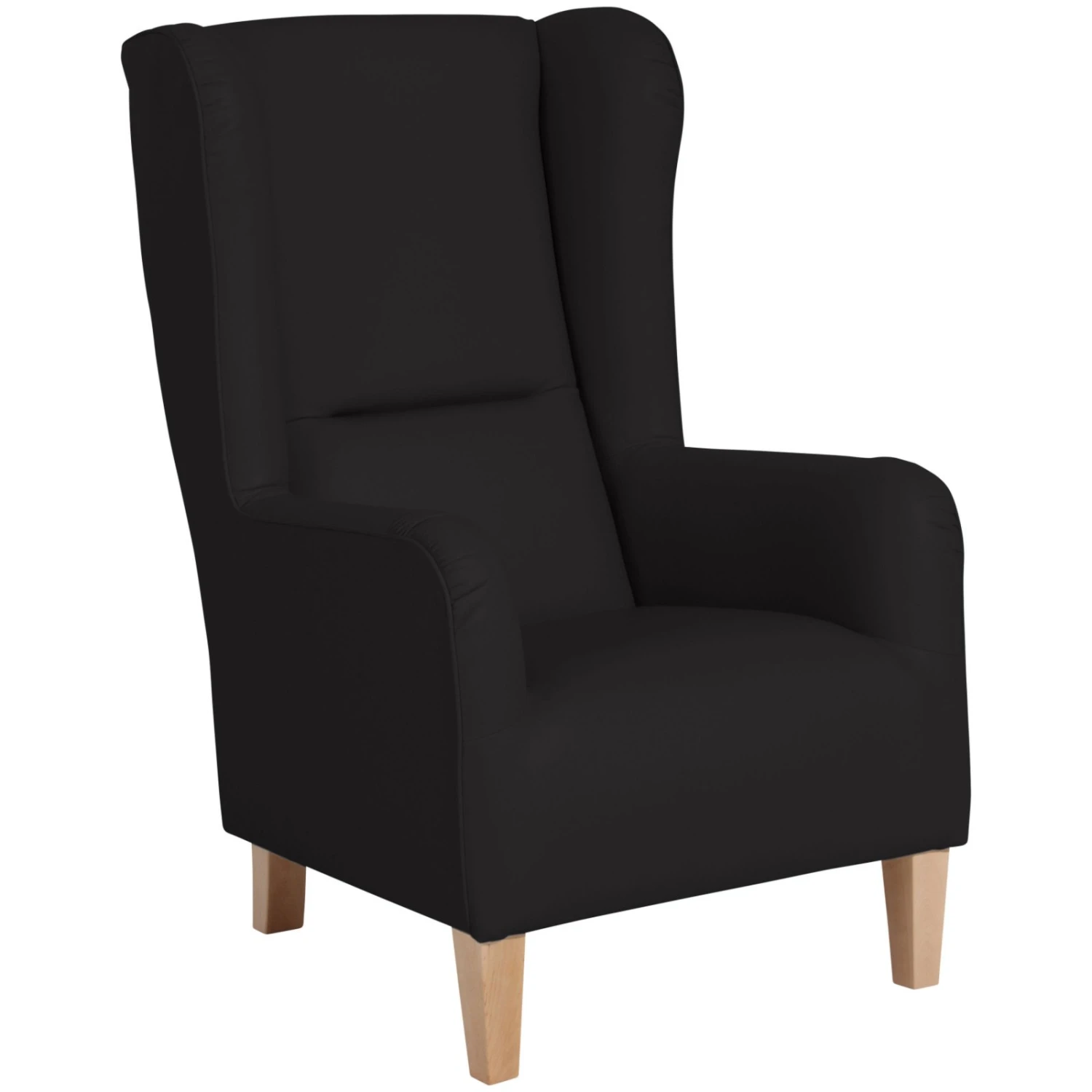 Max Winzer Ohrensessel – schwarz – Kunstleder – mit Keder