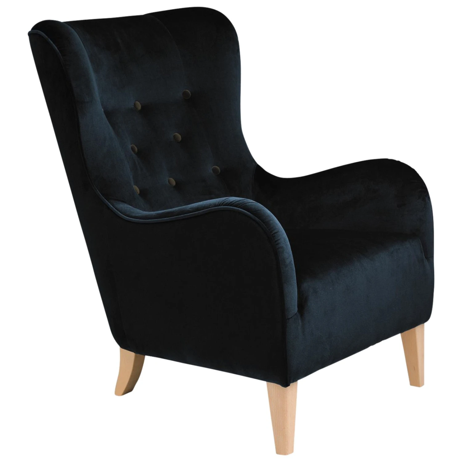 Max Winzer Ohrensessel – schwarz – mit Zierknöpfen – Samtvelours