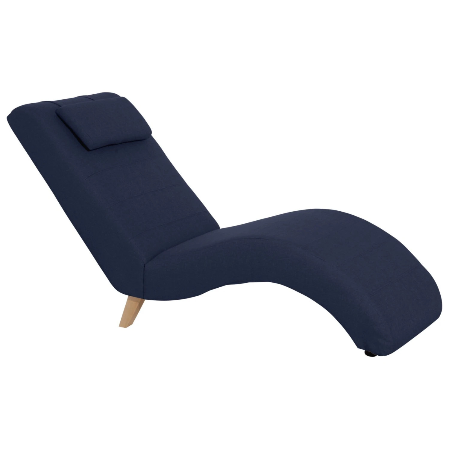 Diese außergewöhnliche Liege ist durch ihre ergonomische Form bestens für entspannende Stunden geeignet. Sie ist mit atmungsaktivem Polyätherschaum gepolstert, der dank seiner Punktelastizität Komfort verspricht. Der Bezug ist in Leinenoptik gehalten, so dass das Dunkelblau leicht meliert wirkt und die Liege sich sehr gut in Ihren Raum einfügt. Gestell und Füße sind aus massiver Buche gefertigt und runden das Design stimmig ab.