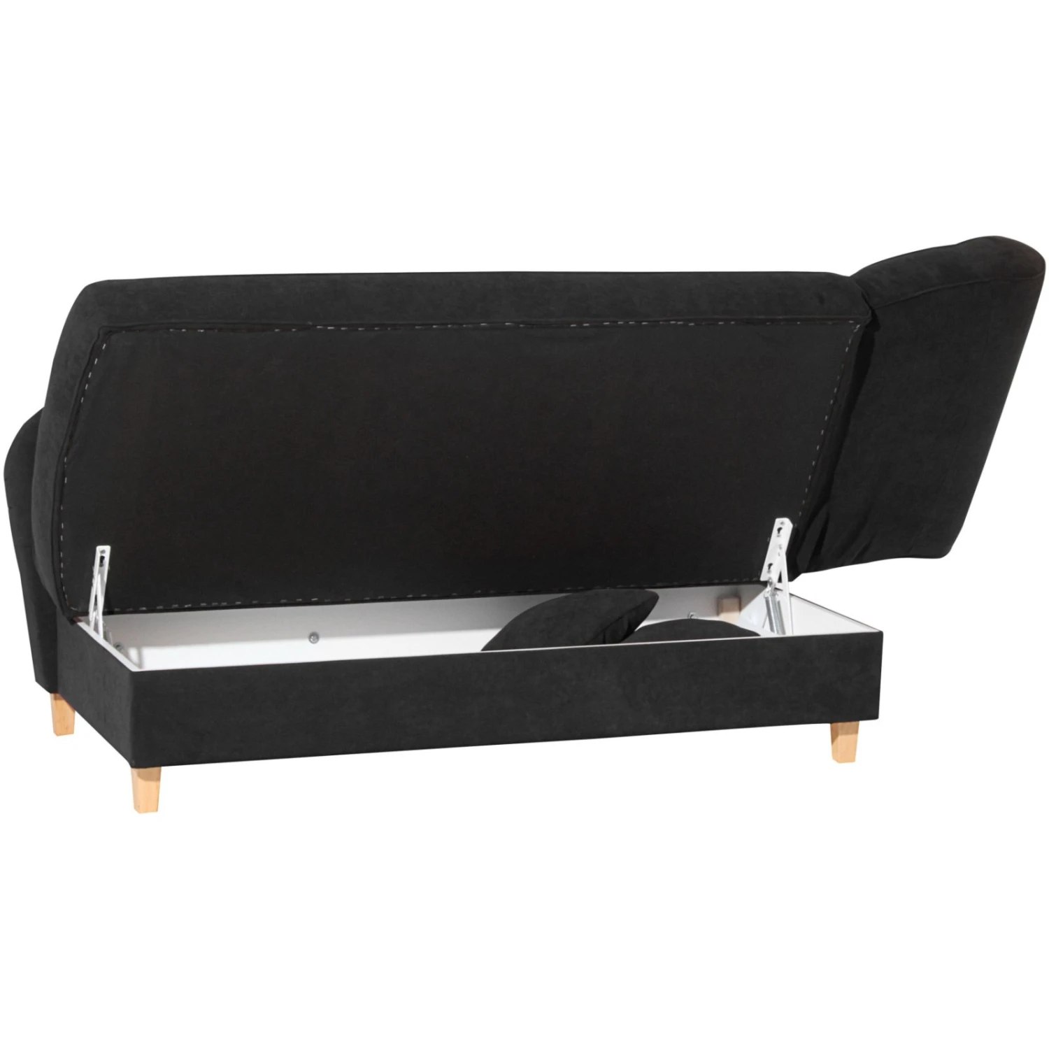 Max Winzer Recamiere – schwarz – Veloursstoff – mit Staukasten