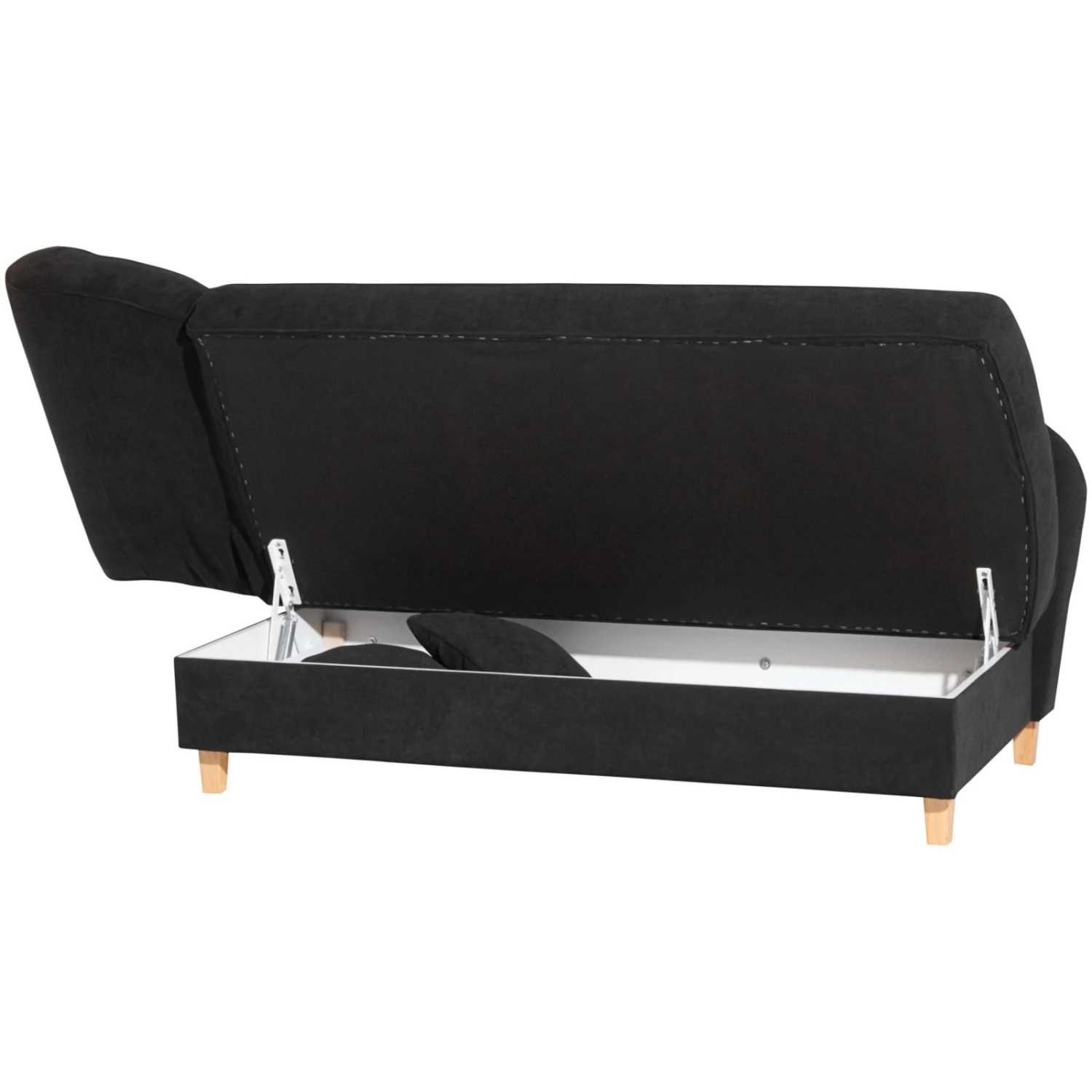 Max Winzer Recamiere – schwarz – Veloursstoff – mit Staukasten