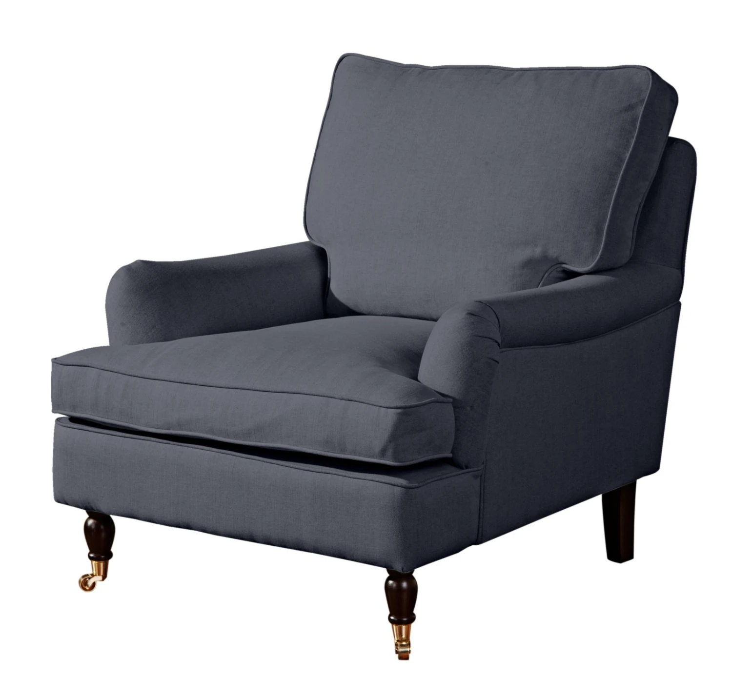Lehnen Sie sich an und genießen Sie die Gemütlichkeit von Schaumstoffflocken im Rücken von dem üppig gefüllten Kissen. Platz nehmen Sie Auf Wellenunterfederung, die mit Polätherschaum gepolstert wurde und neben Komfort auch das Sitzklima unterstützt. Die geschwungenen Armlehnen und die Tiefe mit ca. 108 cm machen diesen Sessel auch optisch zu einem Highlight. Absoluter Hingucker sind die vorderen Füße, die in handwerklicher Kunst gedrechselt und mit Rollen versehen wurden, so dass sie an Klavierfüße erinnern. Die edle Farbe in dunklem Nussbaum rundet in Kombination mit einem anthrazitfarbenen Bezug in Leinenoptik das Gesamtbild ab.