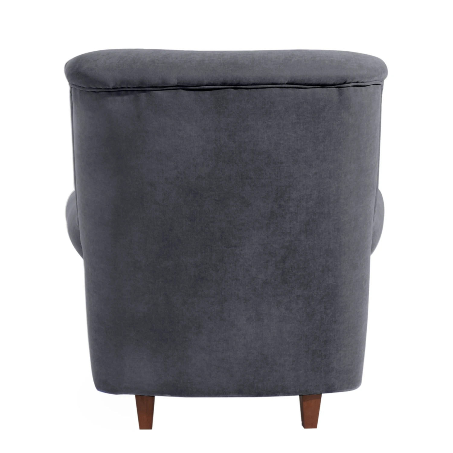 Stilvoller Hochlehnsessel mit charakteristischer Knopfheftung im Rücken in Anthrazit überzeugt durch seine wunderschöne Optik. Seine liebevollen Details und die aufwändige handwerkliche Verarbeitung machen ihn zum Blickfang in jedem Raum. Die Füße sind zur einfachen Selbstmontage. Der Sessel hat eine optimale Sitzhöhe von 44 cm.