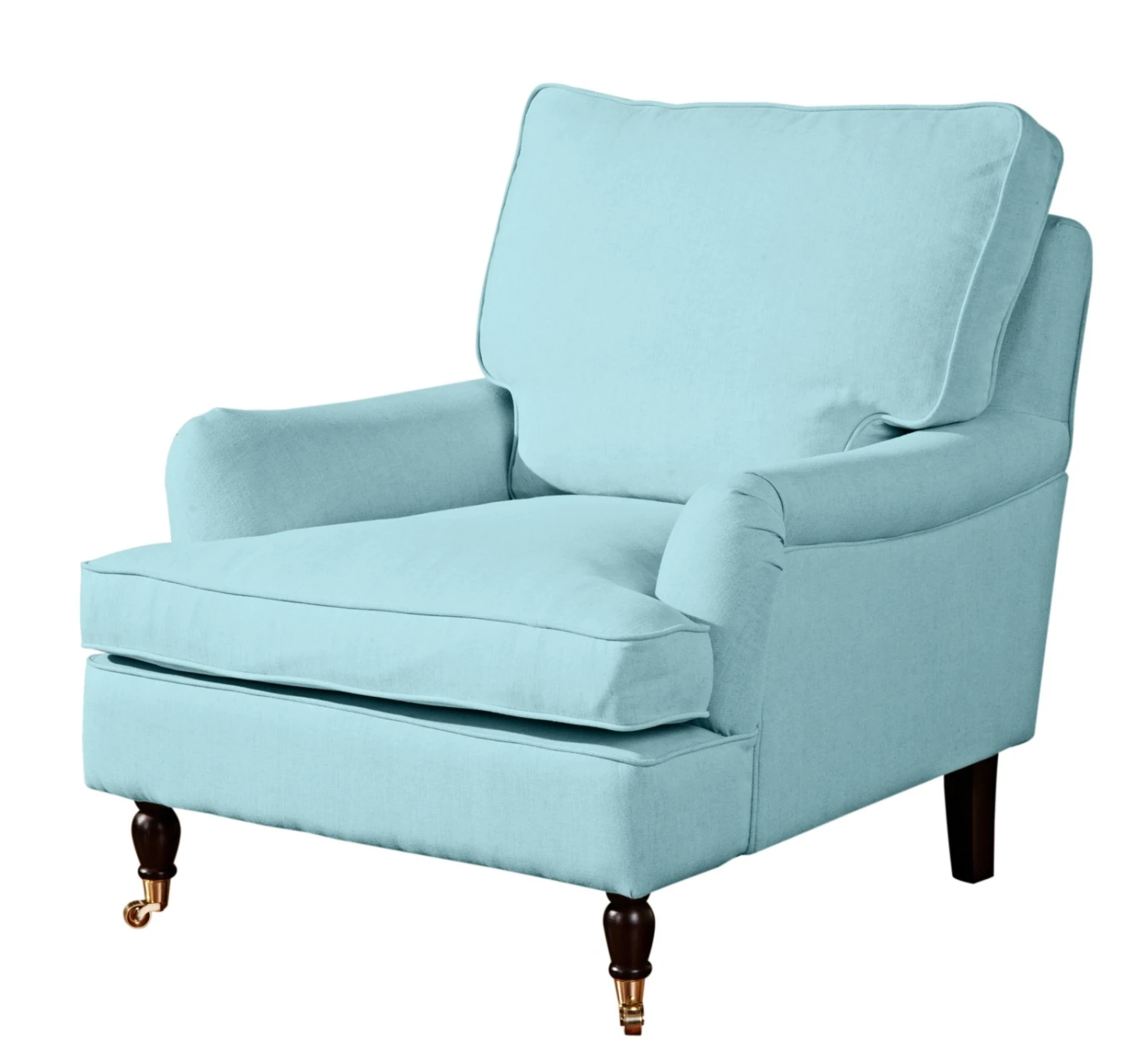 Lehnen Sie sich an und genießen Sie die Gemütlichkeit von Schaumstoffflocken im Rücken von dem üppig gefüllten Kissen. Platz nehmen Sie Auf Wellenunterfederung, die mit Polätherschaum gepolstert wurde und neben Komfort auch das Sitzklima unterstützt. Die geschwungenen Armlehnen und die Tiefe mit ca. 108 cm machen diesen Sessel auch optisch zu einem Highlight. Absoluter Hingucker sind die vorderen Füße, die in handwerklicher Kunst gedrechselt und mit Rollen versehen wurden, so dass sie an Klavierfüße erinnern. Die edle Farbe in dunklem Nussbaum rundet in Kombination mit einem aquafarbenen Bezug in Leinenoptik das Gesamtbild ab.
