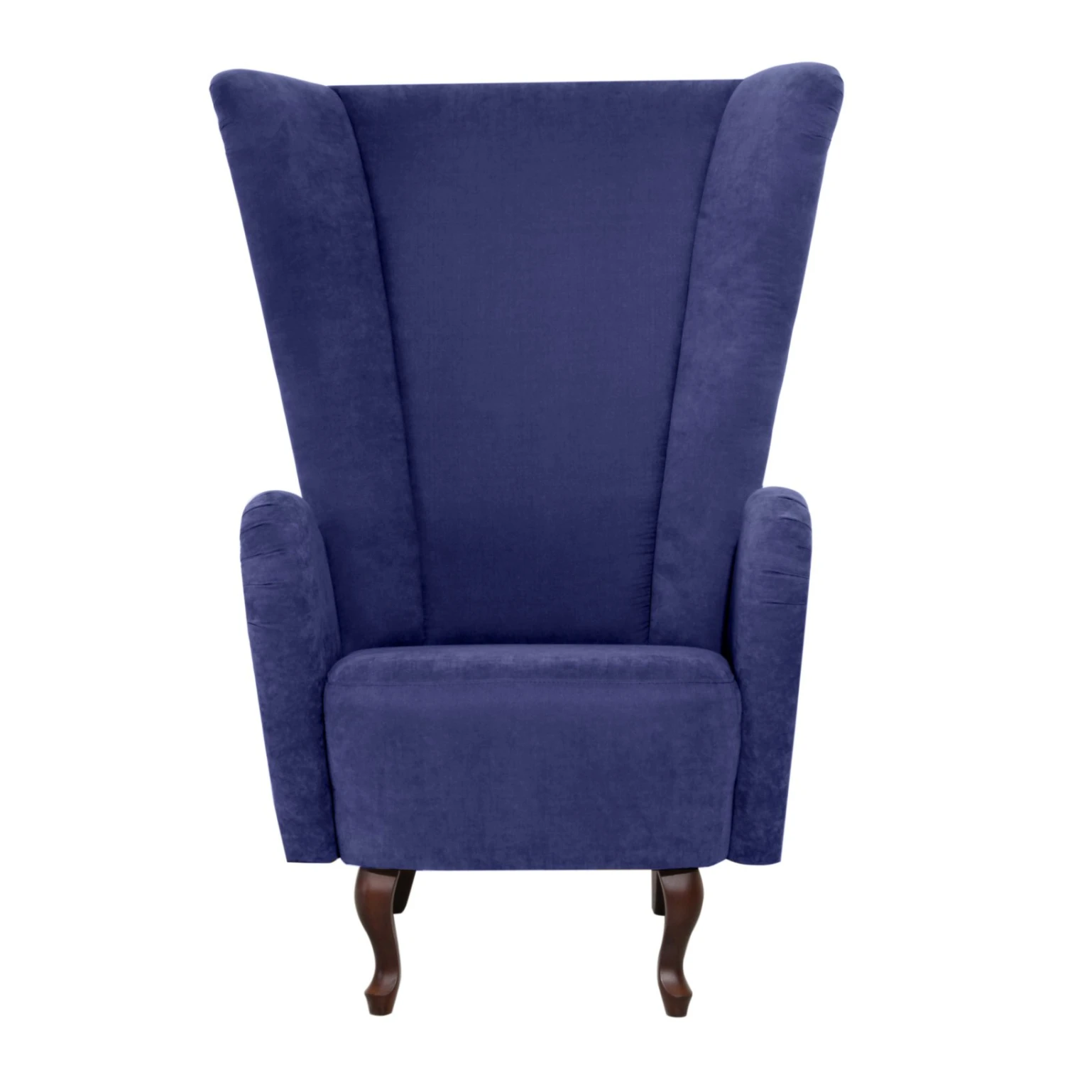 Fühlen Sie sich wie in einem königlichen Saal mit diesem wunderschönen Sessel, der thronähnlich aufgebaut ist. Besonders der sehr hohe Rücken und die wunderschön geschwungenen Füße erwecken dein Eindruck eines majestätischen Hochlehners. Der blaue Veloursstoffbezug ist samtig weich und verspricht gemütliche Stunden. Hohe Stabilität erhält der Sitz durch den Polyätherschaum, der sich durch Punktelastizität und Unterstützung auszeichnet.