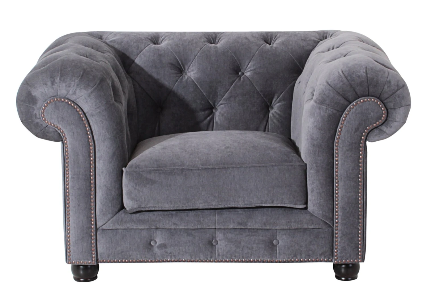 Dieser Sessel holt den englischen Chesterfield Stil in Ihr Wohnzimmer. Mit handwerklicher Wertarbeit wurde die aufwändige Knopfheftung im Rücken, an der Sitzrampe und den geschwungenen Armlehnen gefertigt. Gearbeitet mit viel Liebe zum Detail erhält dieser Sessel seinen markanten, unverwechselbaren Look. Ob als Einzelsessel oder in Kombination zur passenden Garnitur, mit diesem Sessel holen Sie sich englischen Charme in Ihr Zuhause. Die Füße sind zur einfachen Selbstmontage.