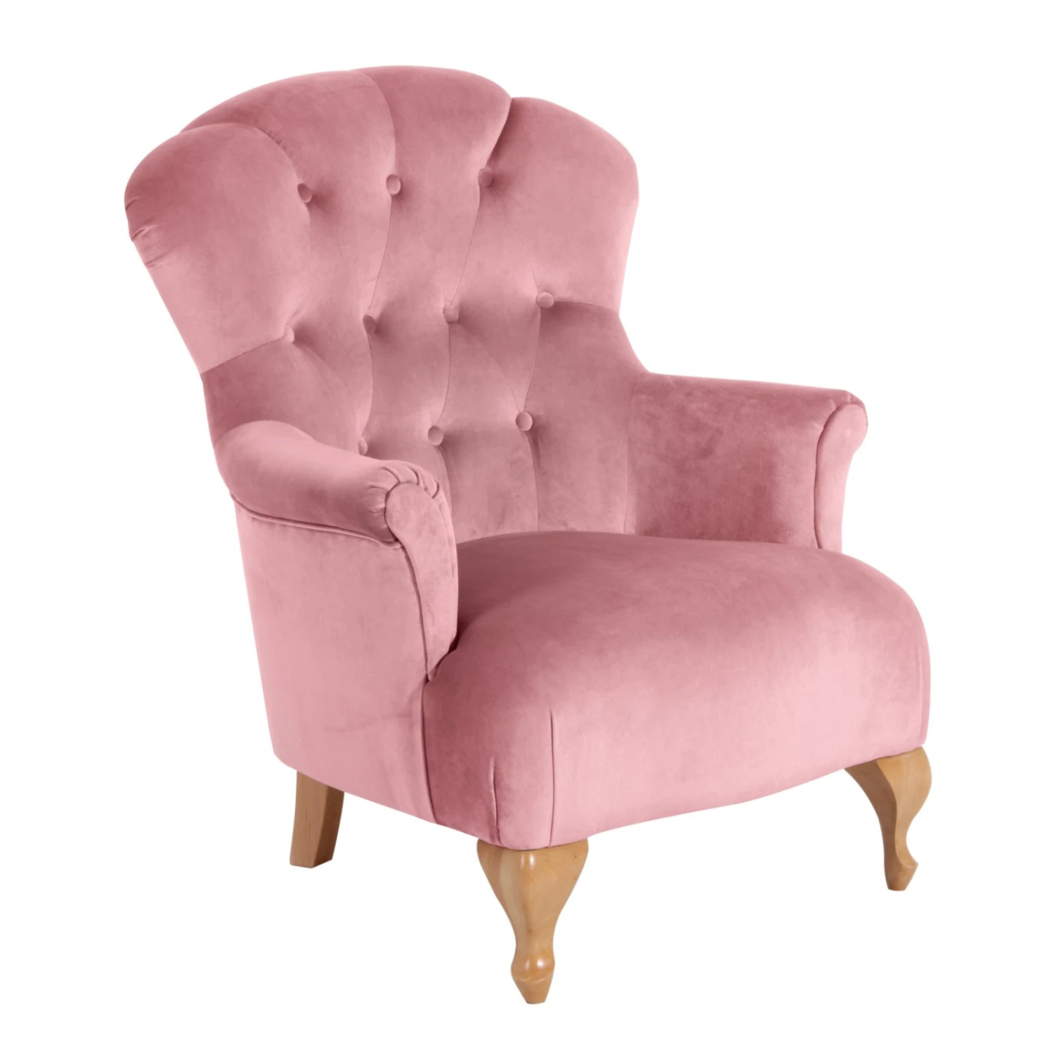 Max Winzer Sessel – rosa – Samtvelours – Buche massiv