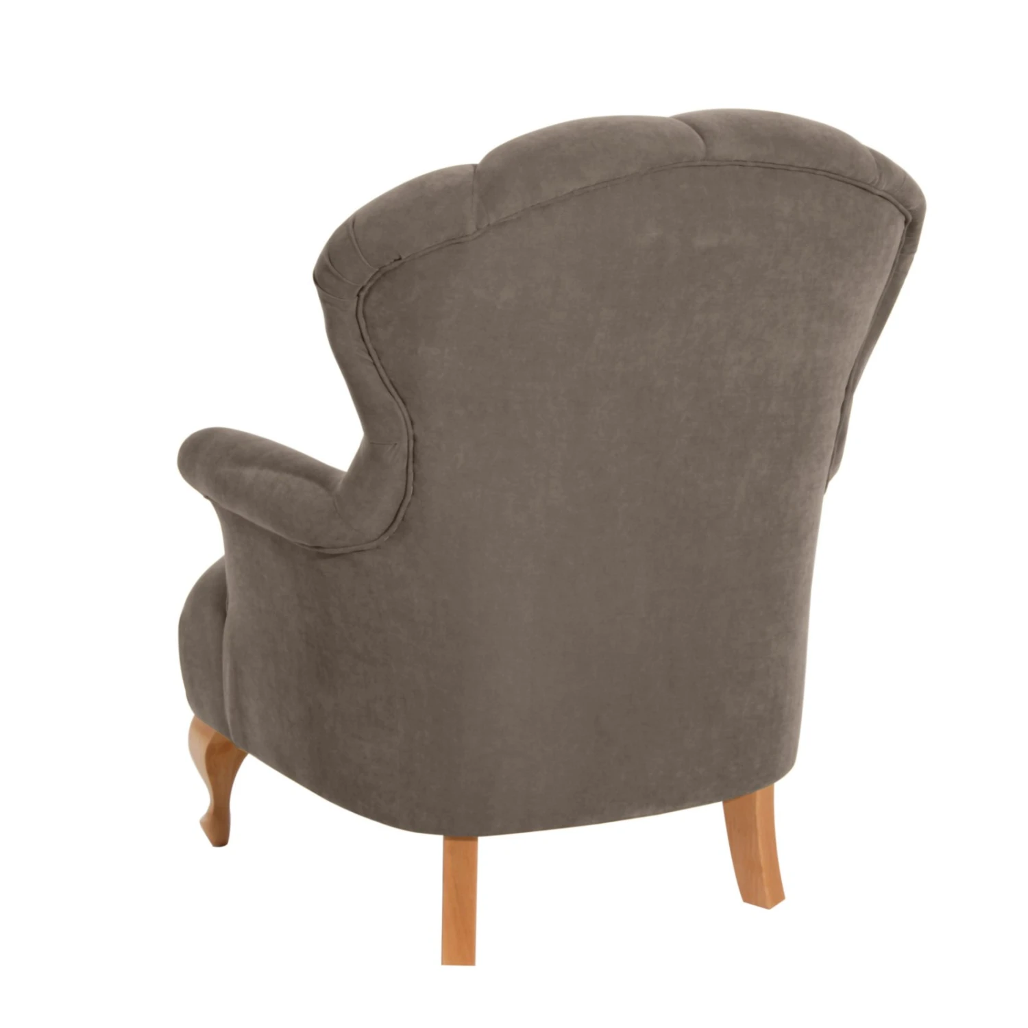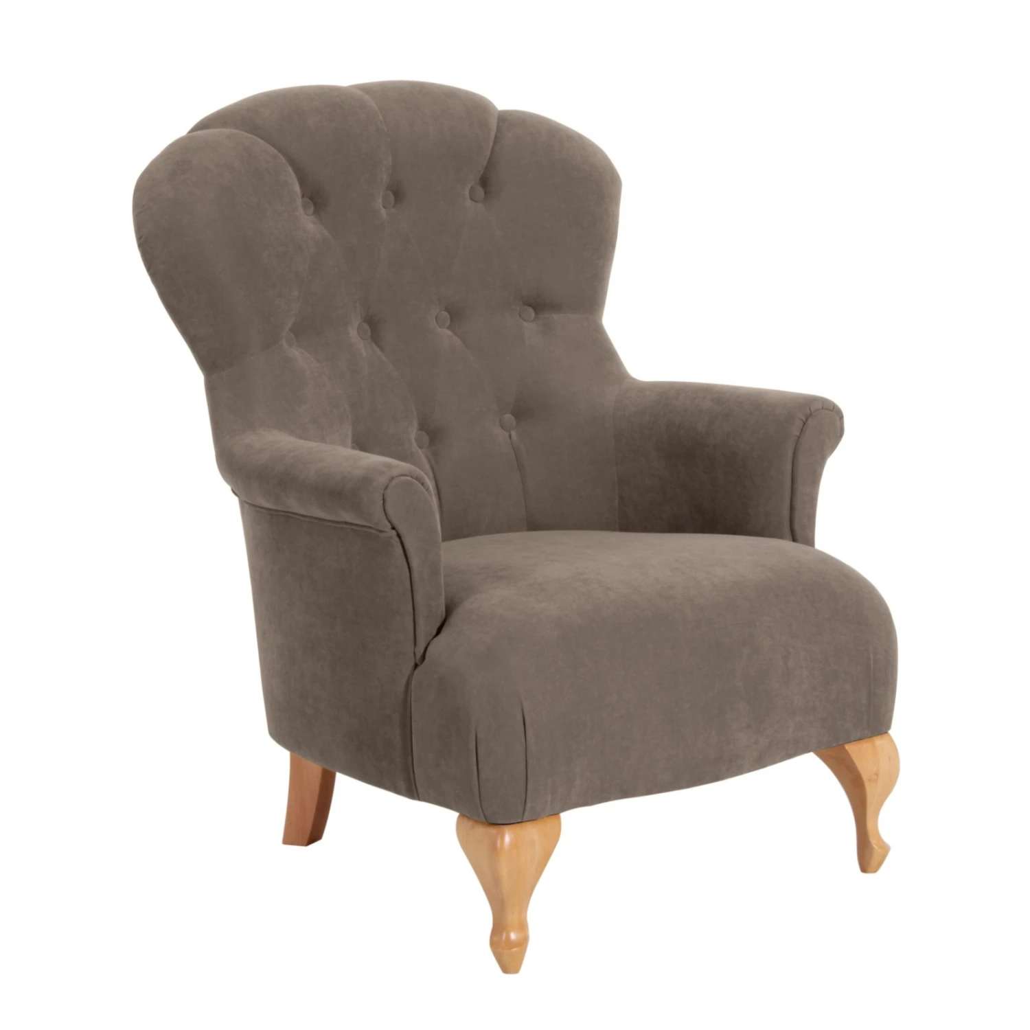 Ein äußerst behgaliches Sitzgefühl erleben Sie mit diesem bezaubernden Sessel. Ein Veloursstoff der angenhemer kaum sein kann. Im Zusammenspiel mit den geschwungen Füßen im Naturton der massiven Buche strahlt er eine Extravaganz erster Klasse aus. In handwerklicher Wertarbeit wurde die aufwändige Knopfheftung im Rücken angebracht. Dieser Sessel ist eine harmonische Komposition aus Komfort und Stil und darf in keinem Wohnzimmer fehlen.