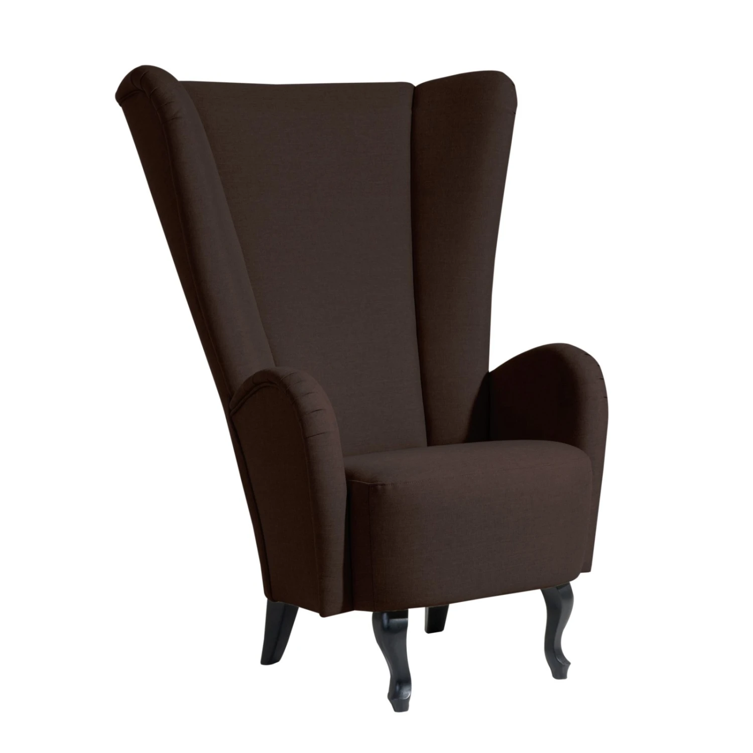Durch eine extrahohe Rückenlehne und elegant geschwungenen Füßen wirkt dieser Hochlehner eher wie ein Thron. Genießen Sie eine königliche Zeit auf komfortablem und stützendem Polyätherschaum, der für seine Punktelastizität und Atmungsaktivität bekannt ist. Der Bezug ist in schokofarbener Leinenoptik, was eine leicht melierte Oberfläche erzeugt. Setzen Sie ein gemütliches Highlight in Ihr Zuhause.