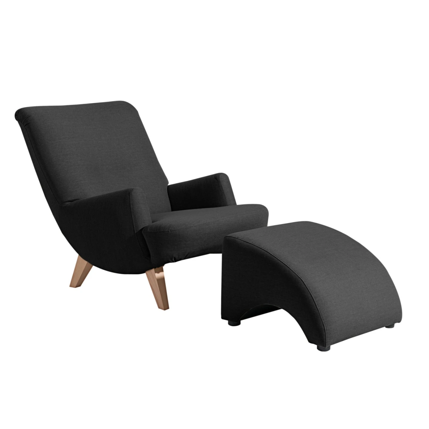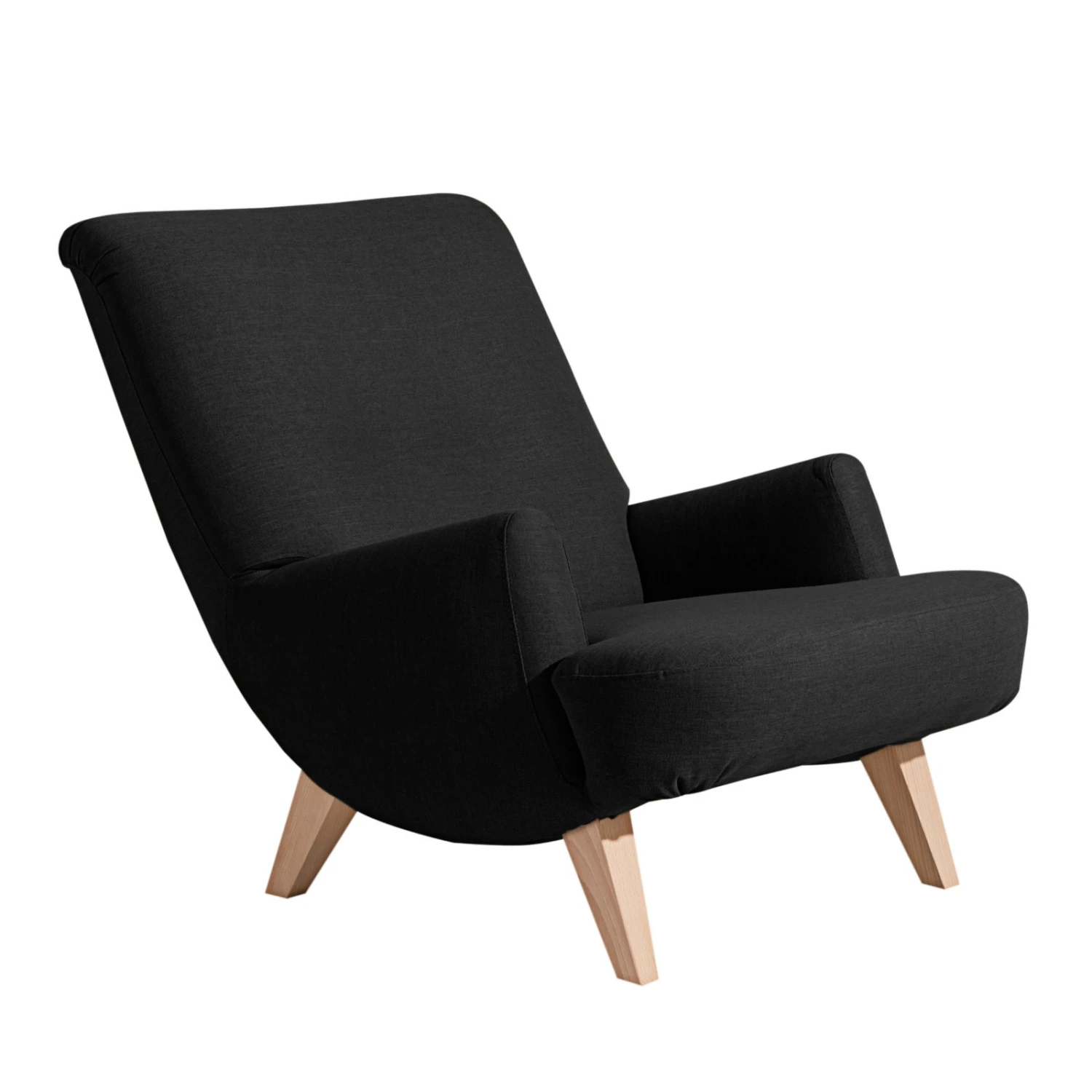 Max Winzer Sessel – schwarz – Leinenoptik – Buche massiv Füße