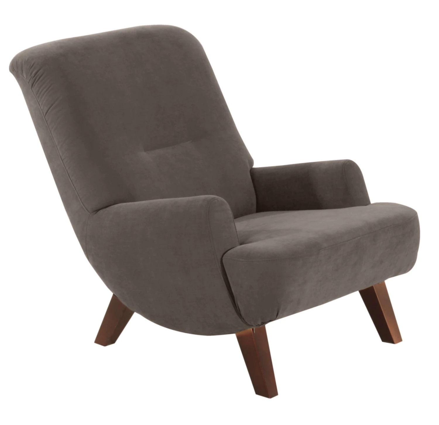 Flauschig weich lädt dieser Sessel zum Verweilen ein. Der Bezug in Stein ist aus Veloursstoff, der sich durch seinen hohen Flor samtig anfühlt. Der Sessel ist rundherum damit bezogen, so dass Sie ihn auch mitten im Raum platzieren können. Die Füße aus massivem Buchenholz sind in edlem dunklen Nussbaum gehalten und verleihen dem Sessel einen Retro-Look. Genießen Sie gemütliche Stunden auf einer Wellenunterfederung, die mit atmungsaktivem Polyätherschaum gepolstert ist.