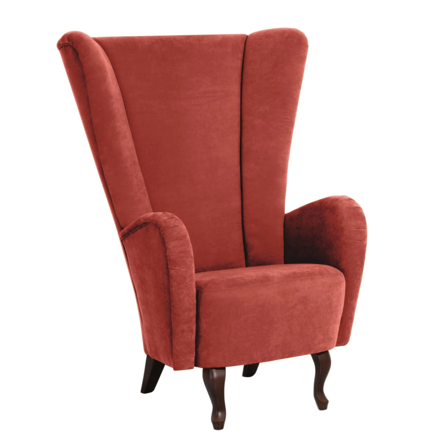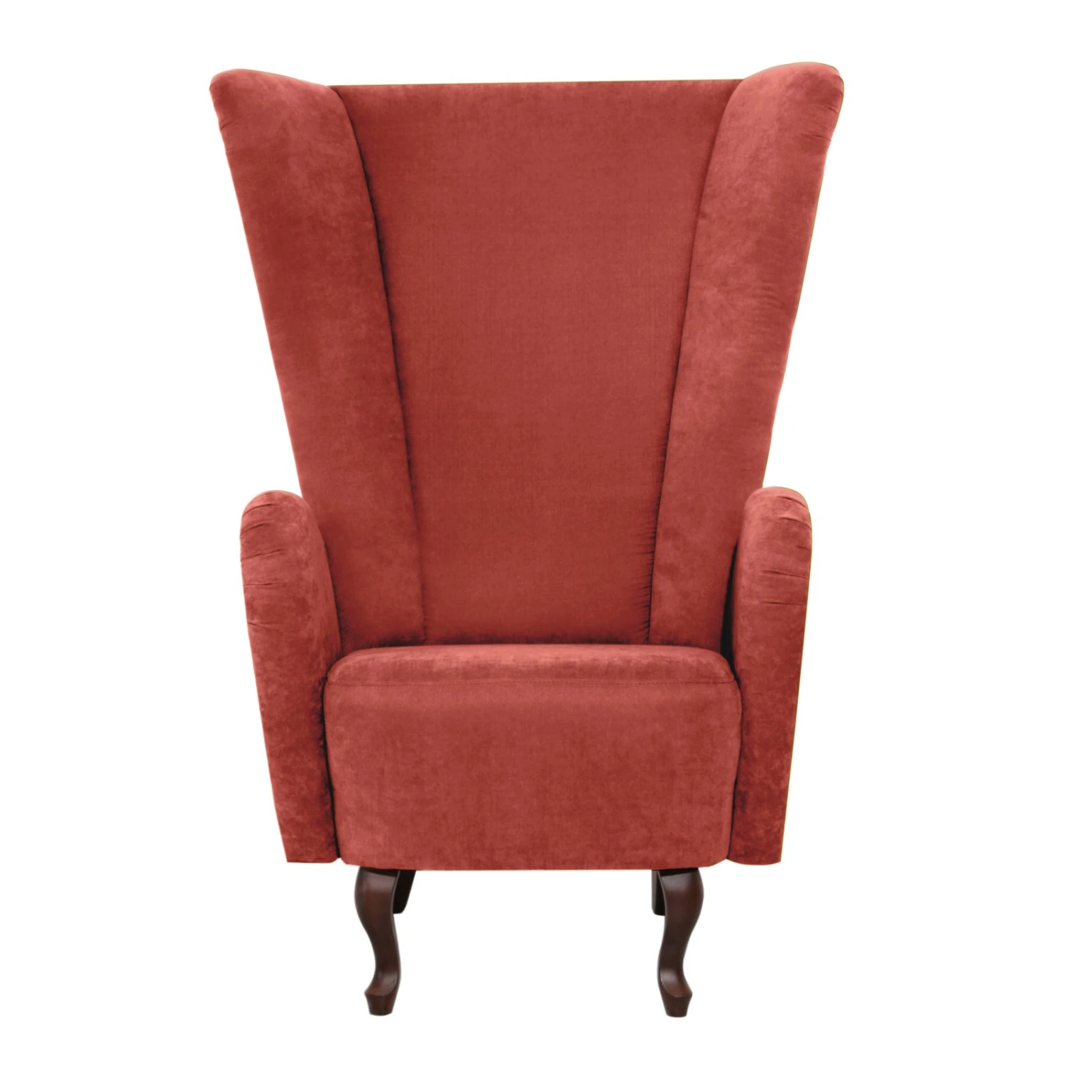 Fühlen Sie sich wie in einem königlichen Saal mit diesem wunderschönen Sessel, der thronähnlich aufgebaut ist. Besonders der sehr hohe Rücken und die wunderschön geschwungenen Füße erwecken dein Eindruck eines majestätischen Hochlehners. Der terracottafarbene Veloursstoffbezug ist samtig weich und verspricht gemütliche Stunden. Hohe Stabilität erhält der Sitz durch den Polyätherschaum, der sich durch Punktelastizität und Unterstützung auszeichnet.