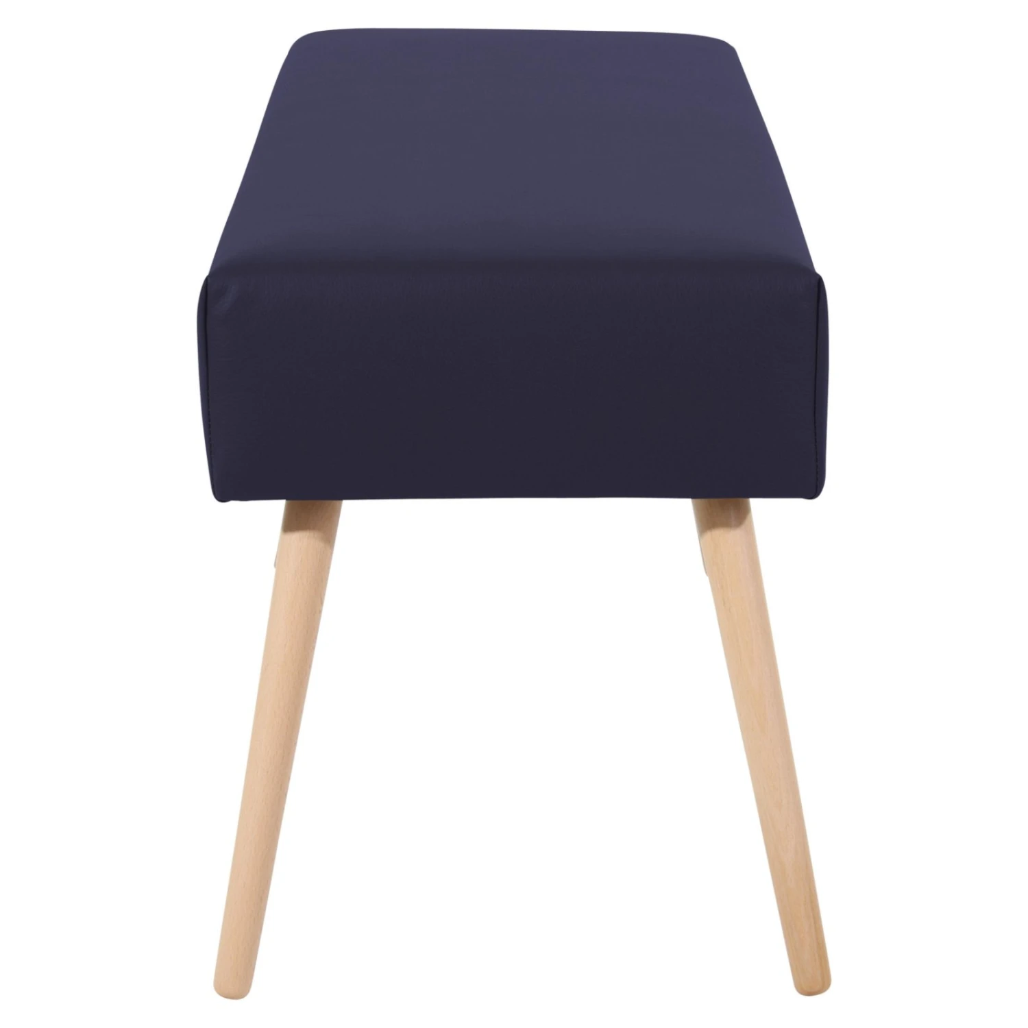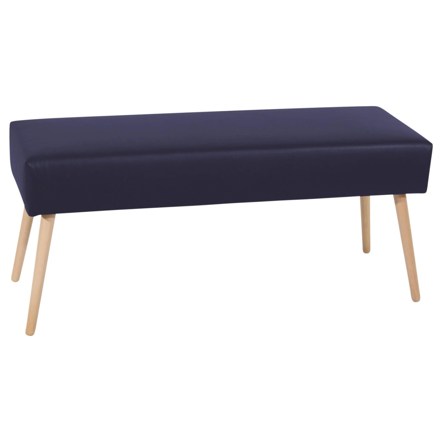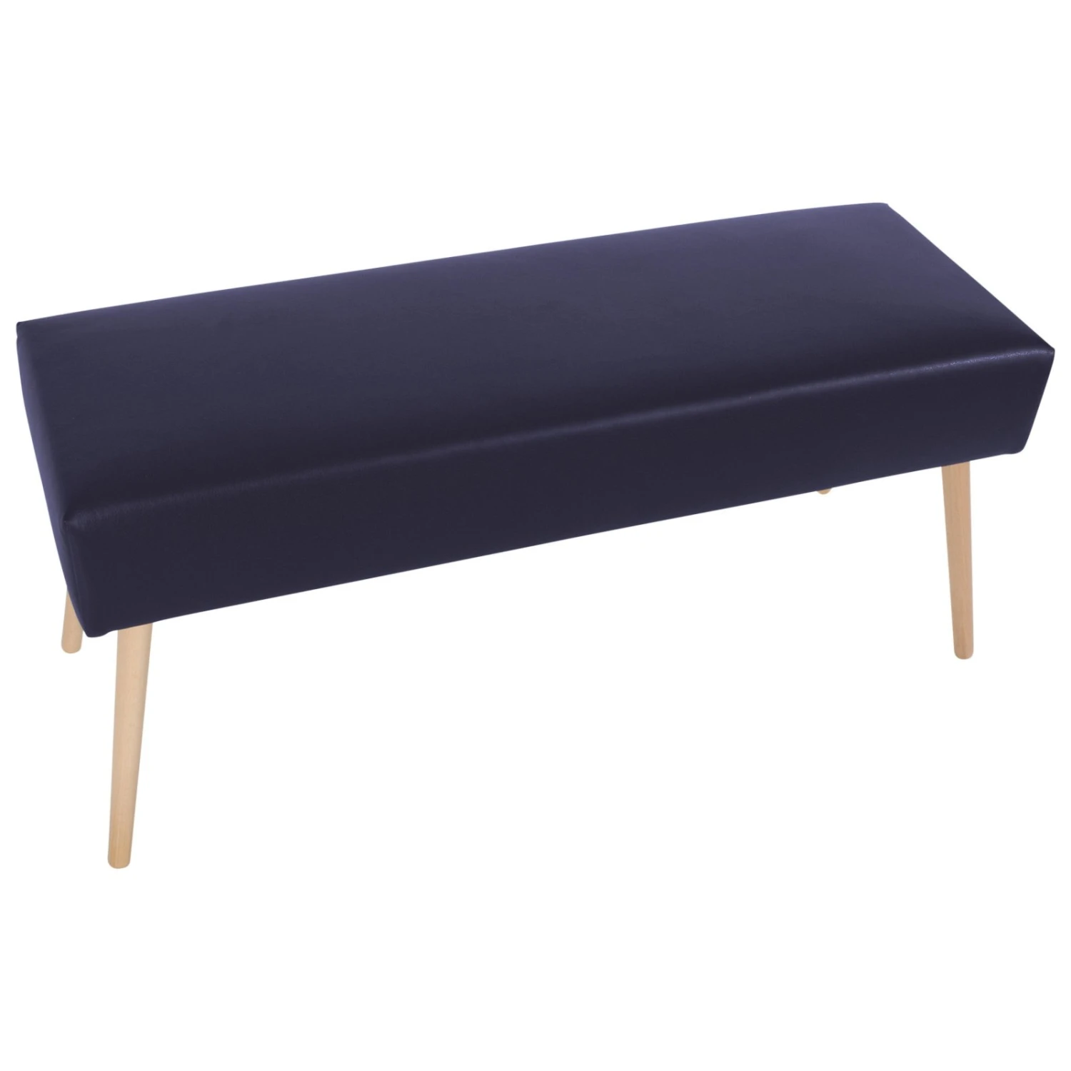 Die formschöne Sitzbank präsentiert sich in einem stilvollen Dunkelblau. Durch die üppig gepolsterte Sitzfläche können Sie hier einen hohen Komfort genießen und das glatte Kunstleder ist pflegeleicht, sowie strapazierfähig. Für die Stabilität sorgt das naturfarbene Gestell, welches aus massivem Buchenholz gefertigt wurde.