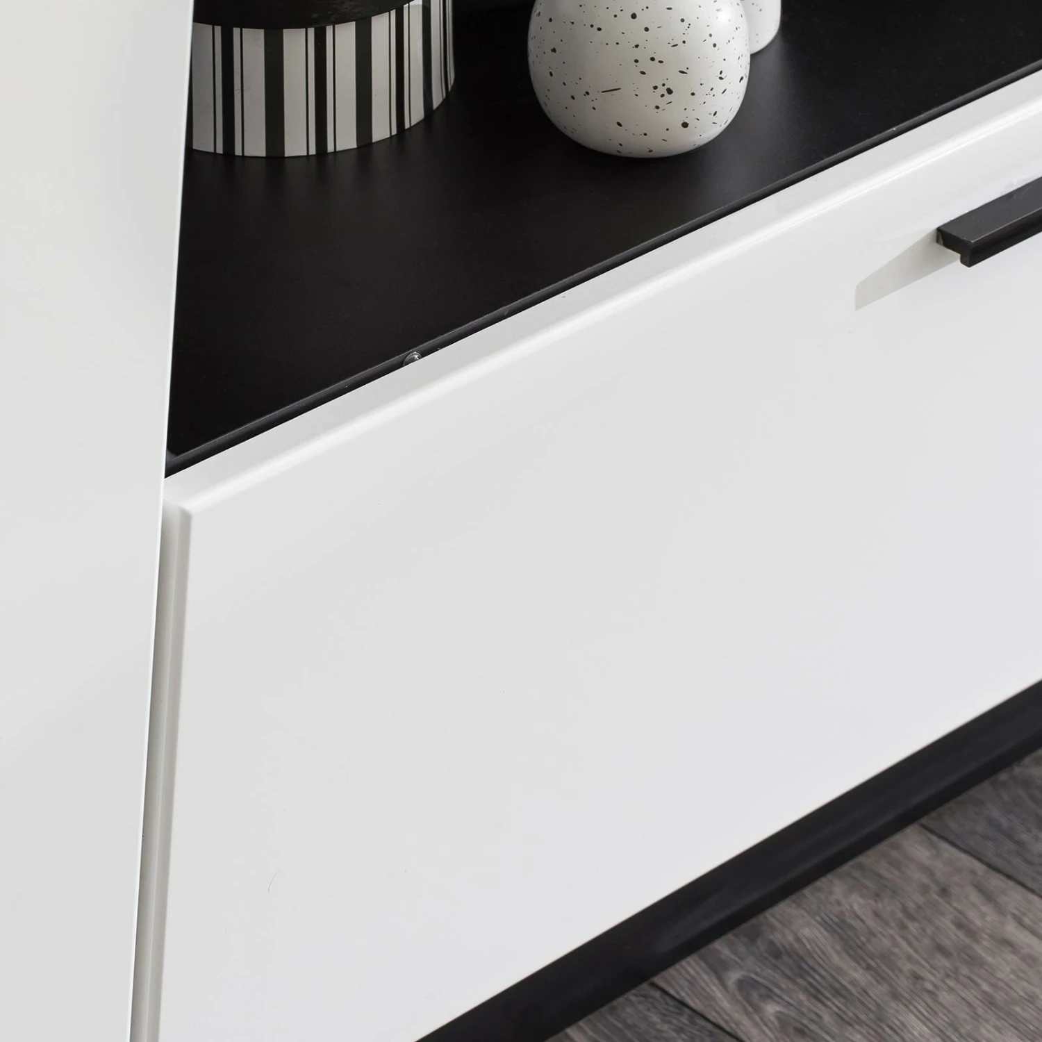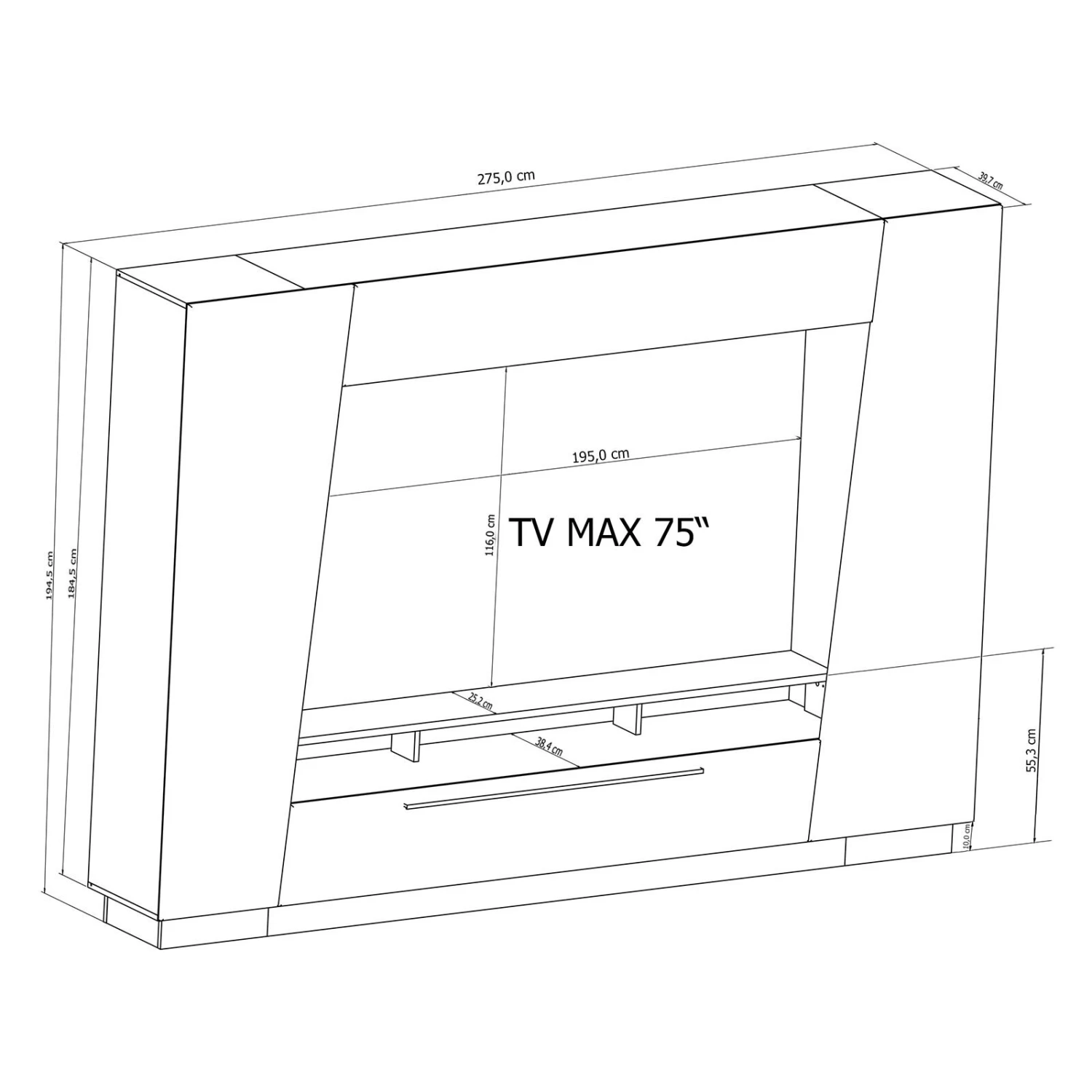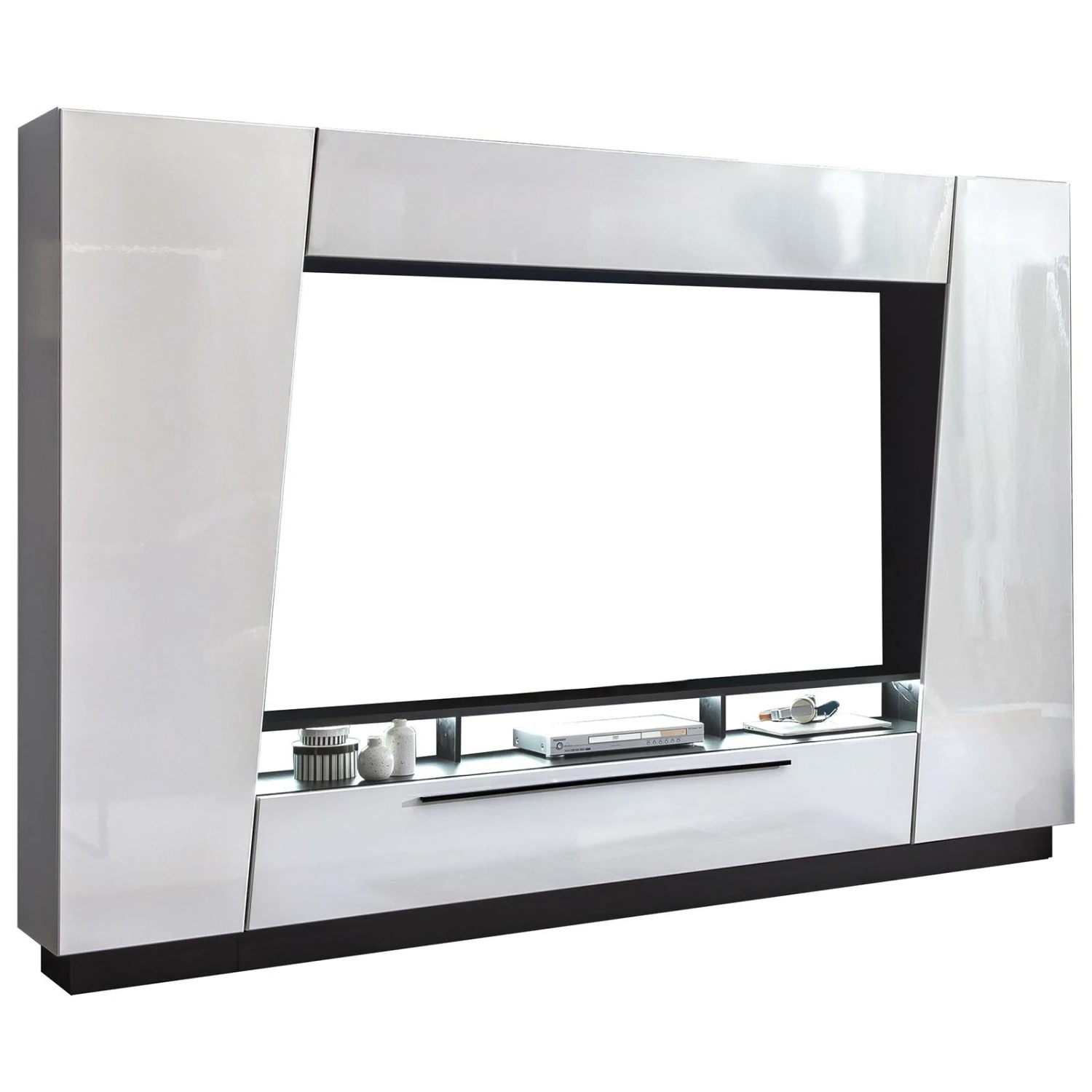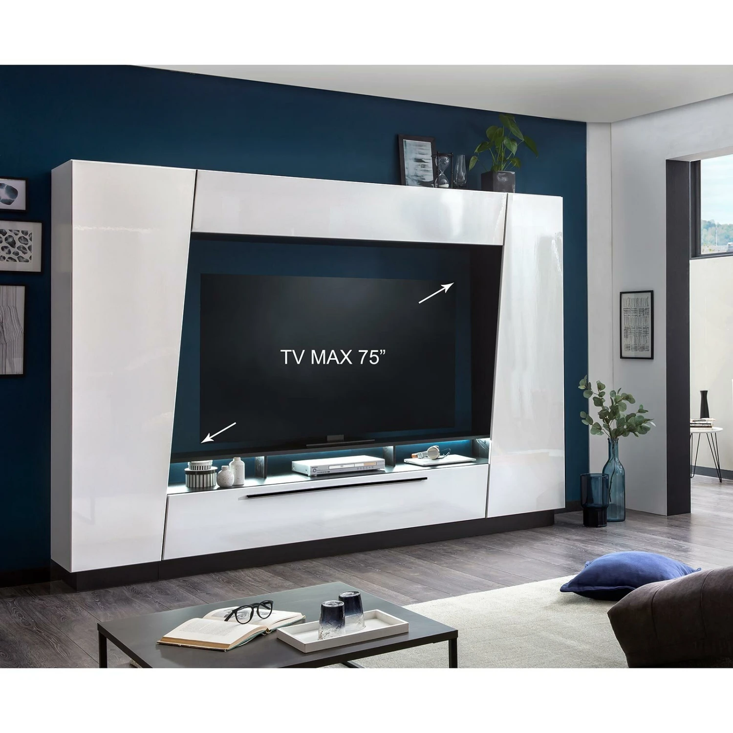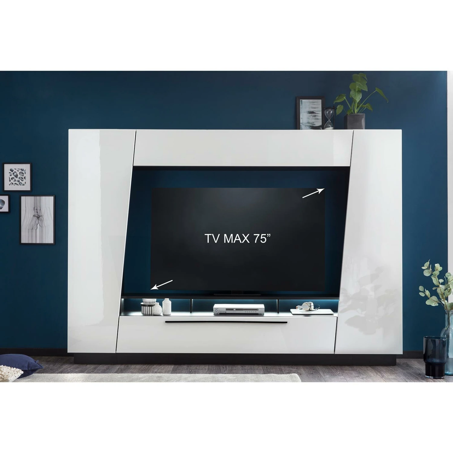 Medienwand – weiß Hochglanz – schwarz – 275 cm