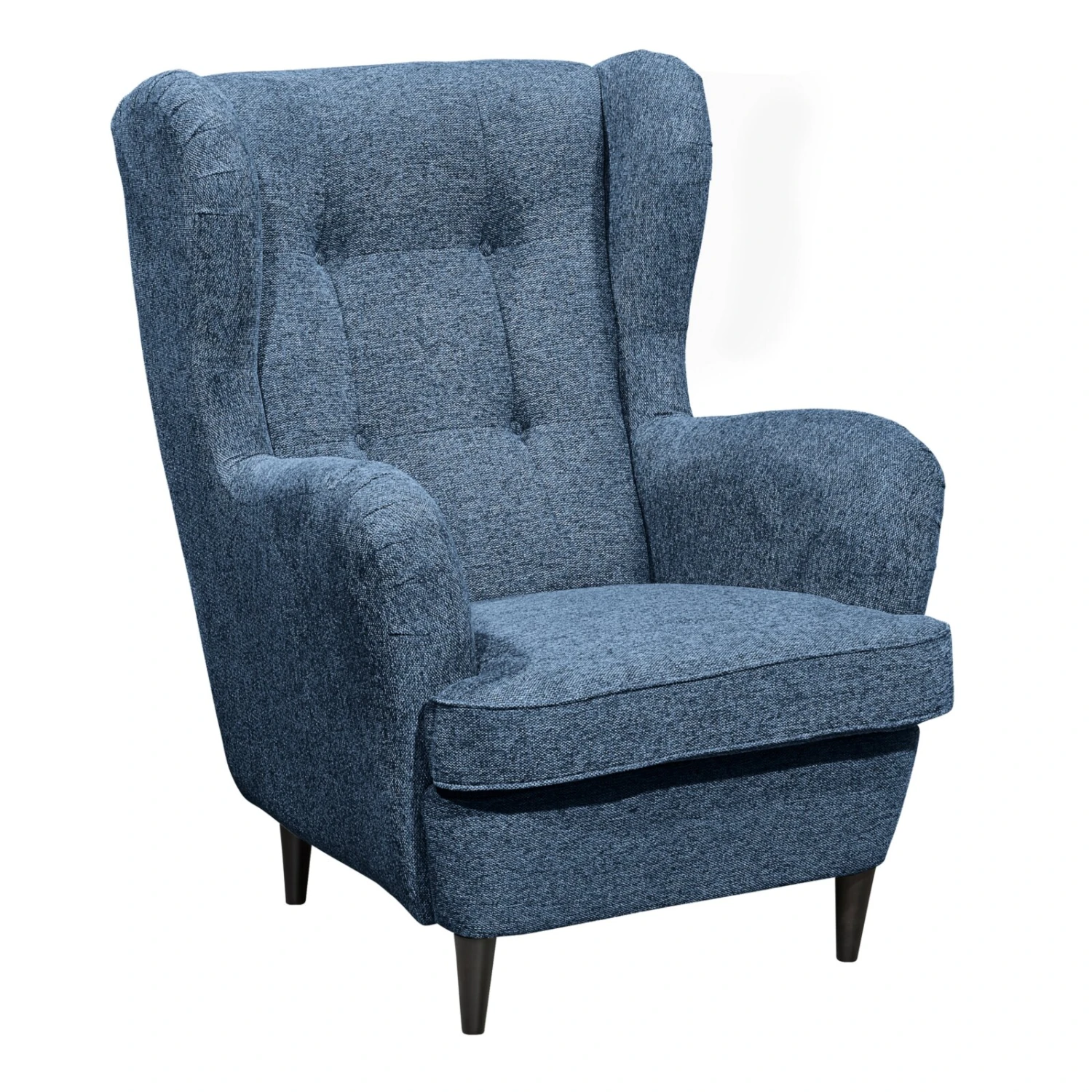 In diesem schönen Ohrensessel in Dunkelblau lassen sich stressige Tage entspannt ausklingen, egal ob Sie in ihm ein Buch lesen oder einfach nur relaxen möchten. Durch die Polsterung aus Nosagfedern im Sitz und dem Schaumstoff im Rücken genießen Sie einen hohen Komfort. Die schwarzen Füße aus Massivholz runden das Design zusätzlich ab. Da der Rücken mit dem Originalstoff bezogen ist, können Sie den Ohrensessel frei in Ihren Räumlichkeiten platzieren.