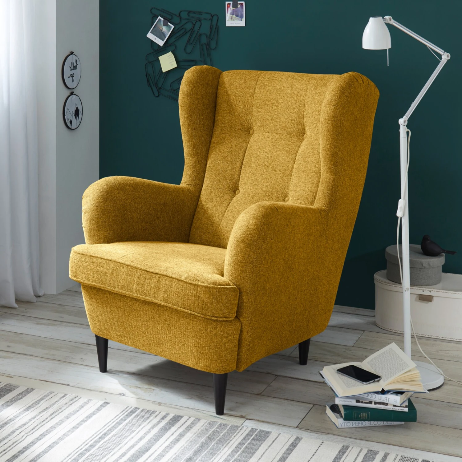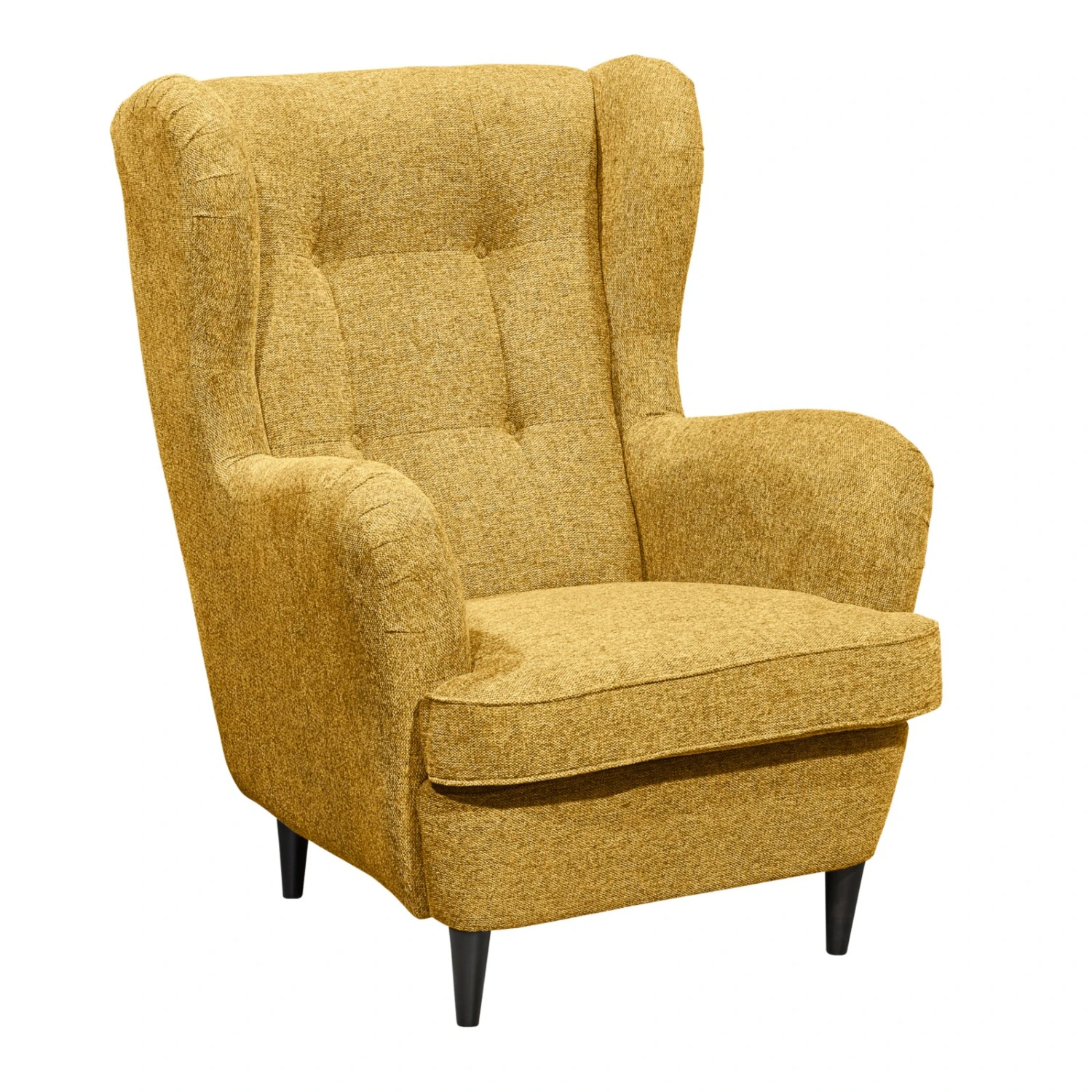 In diesem schönen Ohrensessel in Safran lassen sich stressige Tage entspannt ausklingen, egal ob Sie in ihm ein Buch lesen oder einfach nur relaxen möchten. Durch die Polsterung aus Nosagfedern im Sitz und dem Schaumstoff im Rücken genießen Sie einen hohen Komfort. Die schwarzen Füße aus Massivholz runden das Design zusätzlich ab. Da der Rücken mit dem Originalstoff bezogen ist, können Sie den Ohrensessel frei in Ihren Räumlichkeiten platzieren.