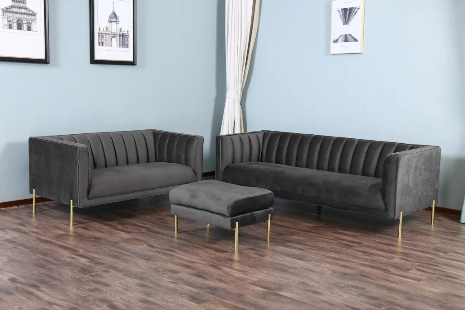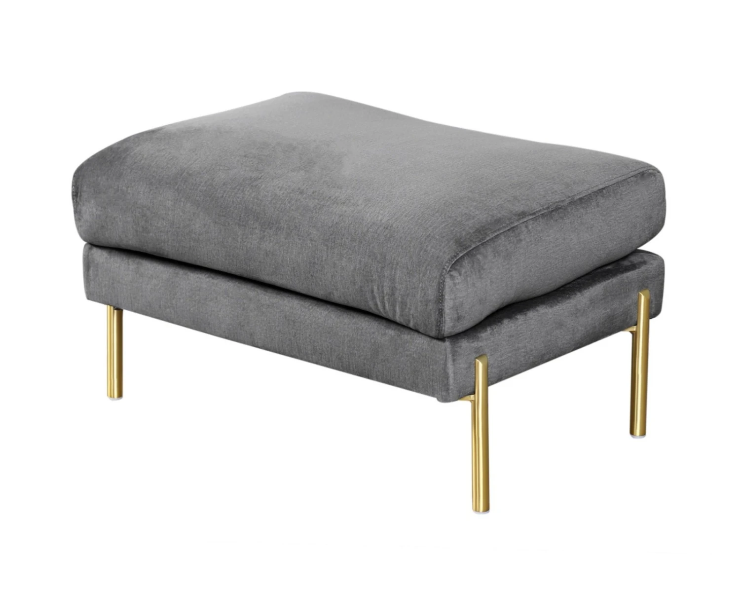Der graue Polsterhocker ist mit einer weichen Schaumstoffpolsterung ausgestattet und bietet eine komfortable Sitzmöglichkeit für Sie oder Ihre Gäste. Der samtige Bezug und die messingfarbenen Metall-Füße machen diesen Hocker zu einem modernen Blickfang in Ihrem Wohnraum und verleihen ihm den angesagten Retro-Look.