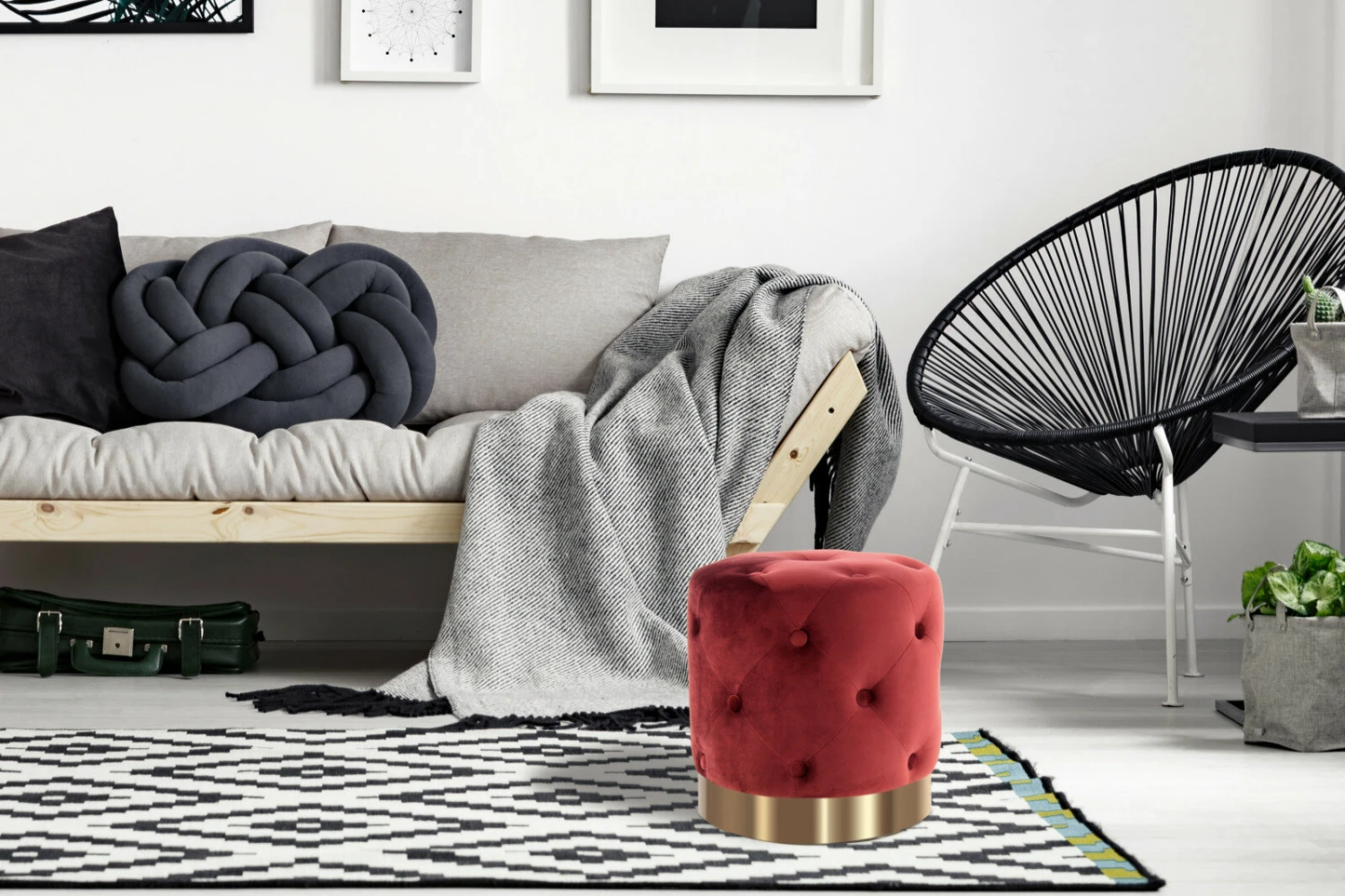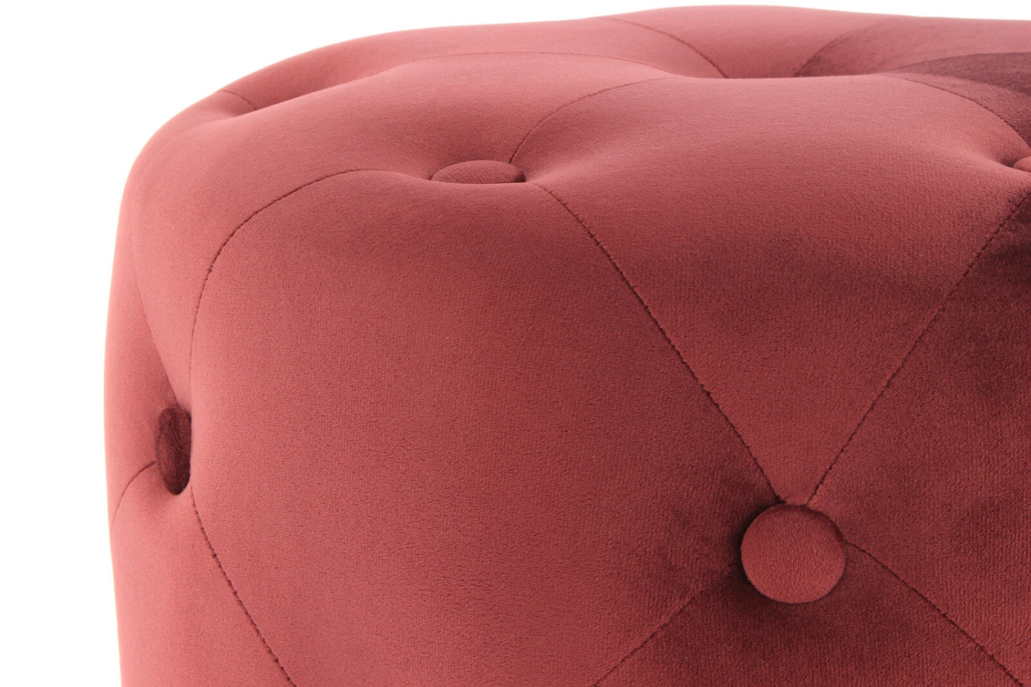 Der samtweiche Stoffbezug im satten Rot wird durch die Steppnähte und die Zierknöpfe zu einem ganz besonderen Hingucker, der Charme und Eleganz ausstrahlt. Abgerundet wird das Design durch den goldenen Standfuß, der einen glamourösen Akzent setzt. Egal ob im Wohnzimmer, im Eingangsbereich oder im Schlafzimmer, mit diesem Hocker können Sie jeden Raum aufpeppen.