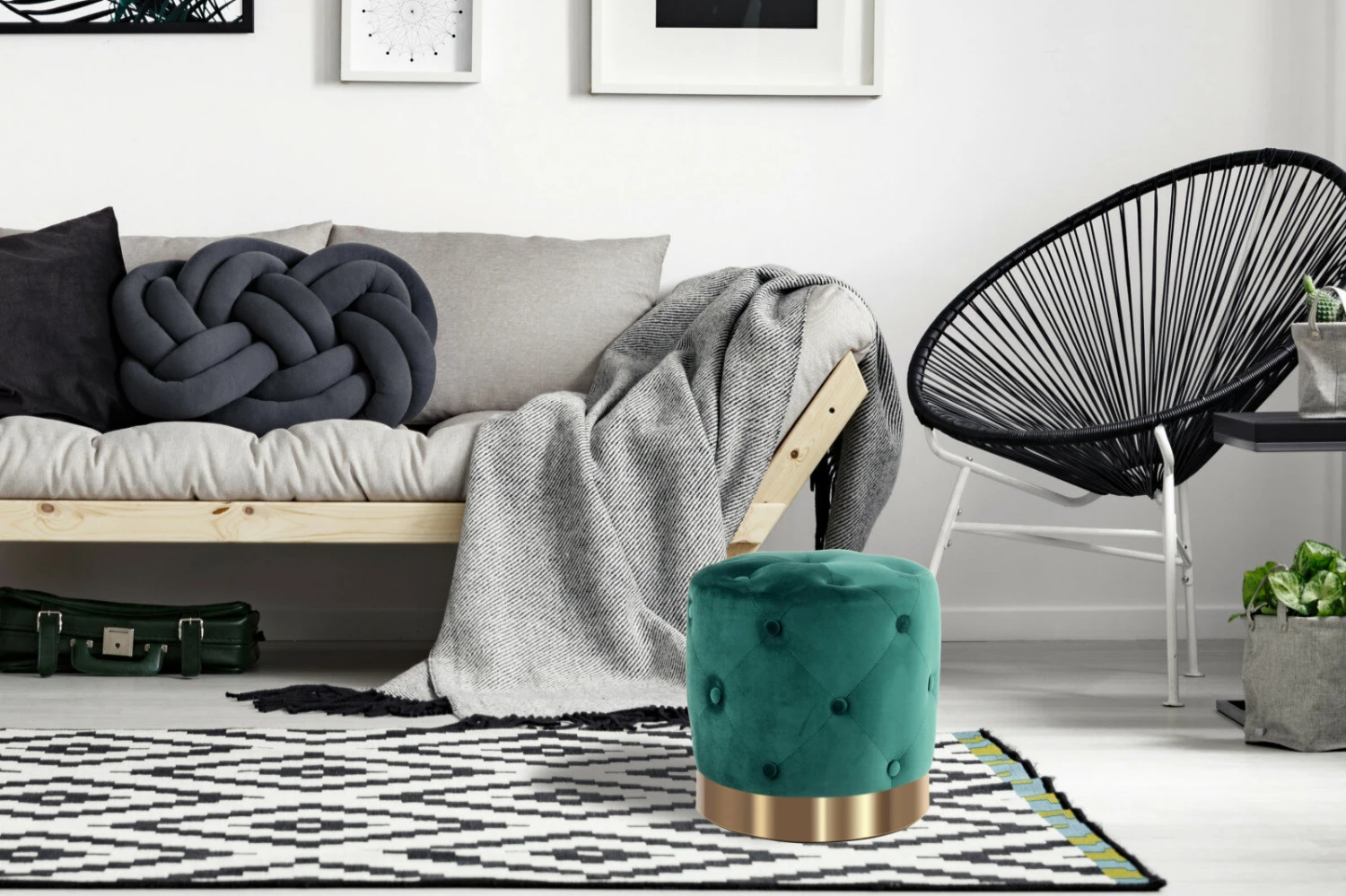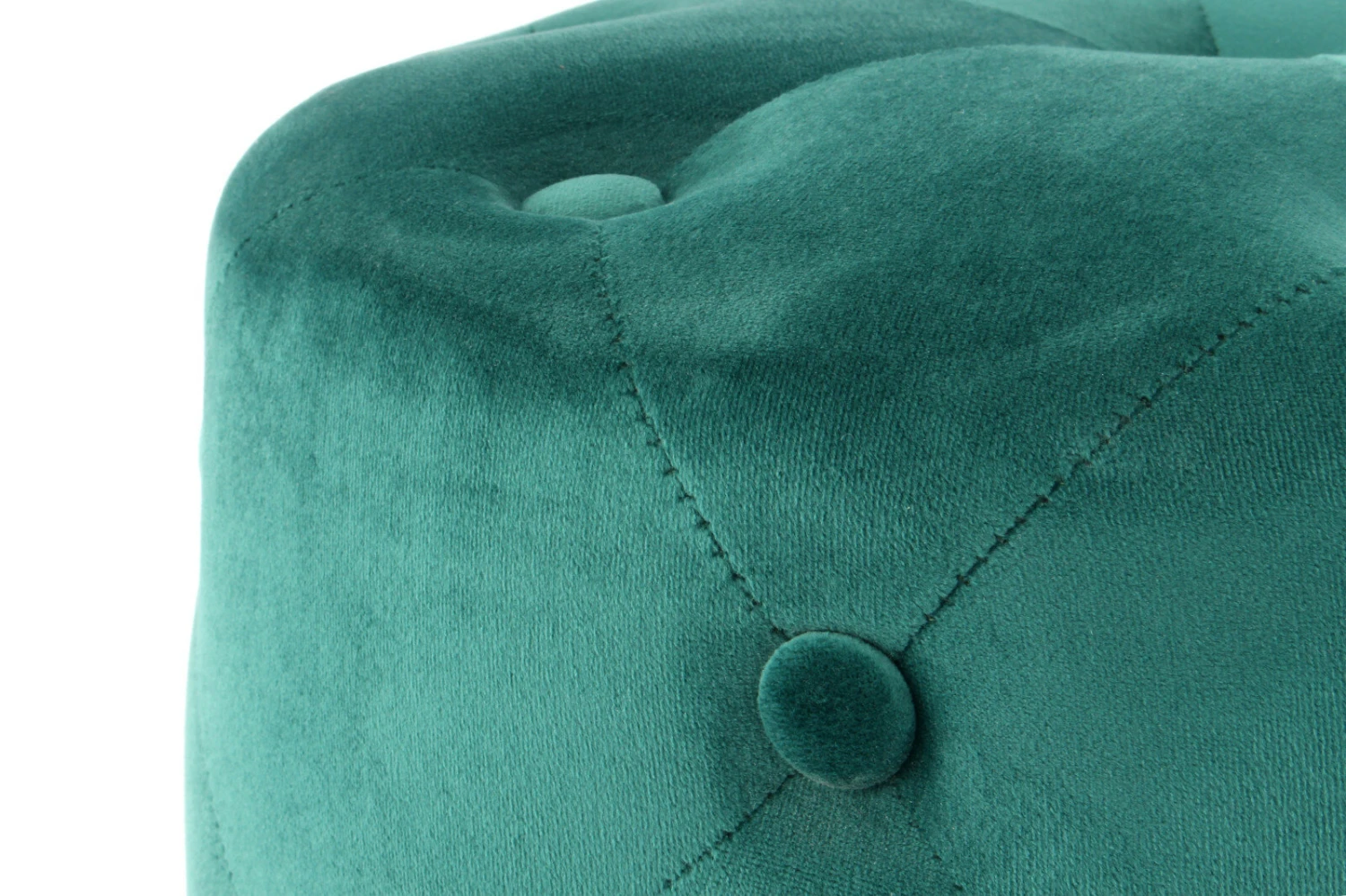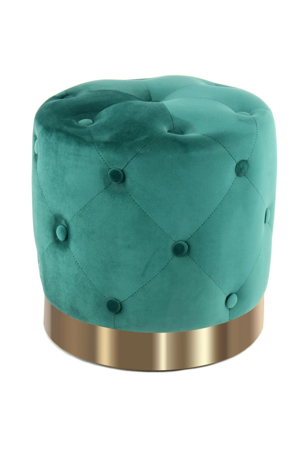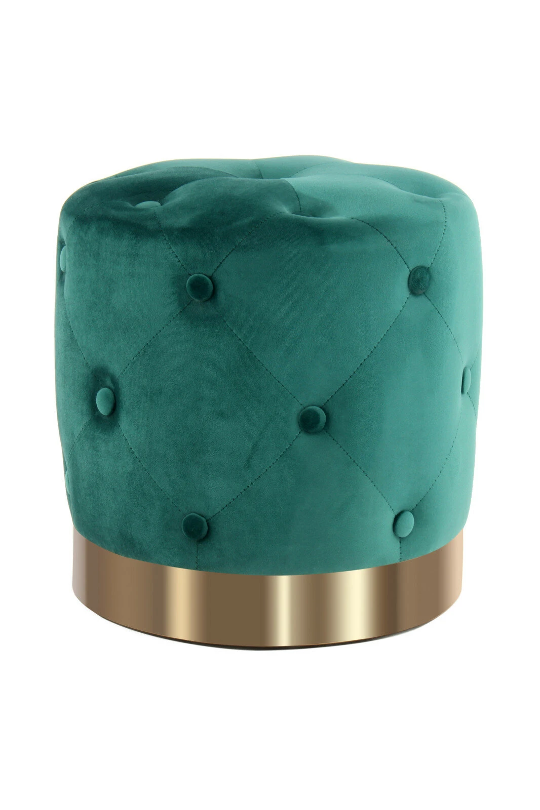 Der samtweiche Stoffbezug im eindrucksvollen Grün wird durch die Steppnähte und die Zierknöpfe zu einem ganz besonderen Hingucker, der Charme und Eleganz ausstrahlt. Abgerundet wird das Design durch den goldenen Standfuß, der einen glamourösen Akzent setzt. Egal ob im Wohnzimmer, im Eingangsbereich oder im Schlafzimmer, mit diesem Hocker können Sie jeden Raum aufpeppen.