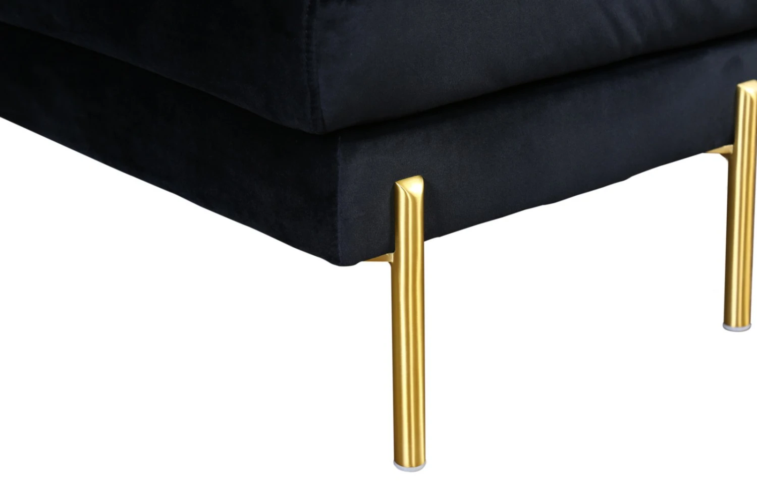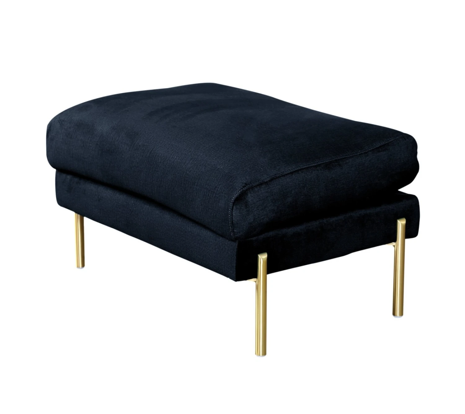 Der schwarze Polsterhocker ist mit einer weichen Schaumstoffpolsterung ausgestattet und bietet eine komfortable Sitzmöglichkeit für Sie oder Ihre Gäste. Der samtige Bezug und die messingfarbenen Metall-Füße machen diesen Hocker zu einem modernen Blickfang in Ihrem Wohnraum und verleihen ihm den angesagten Retro-Look.