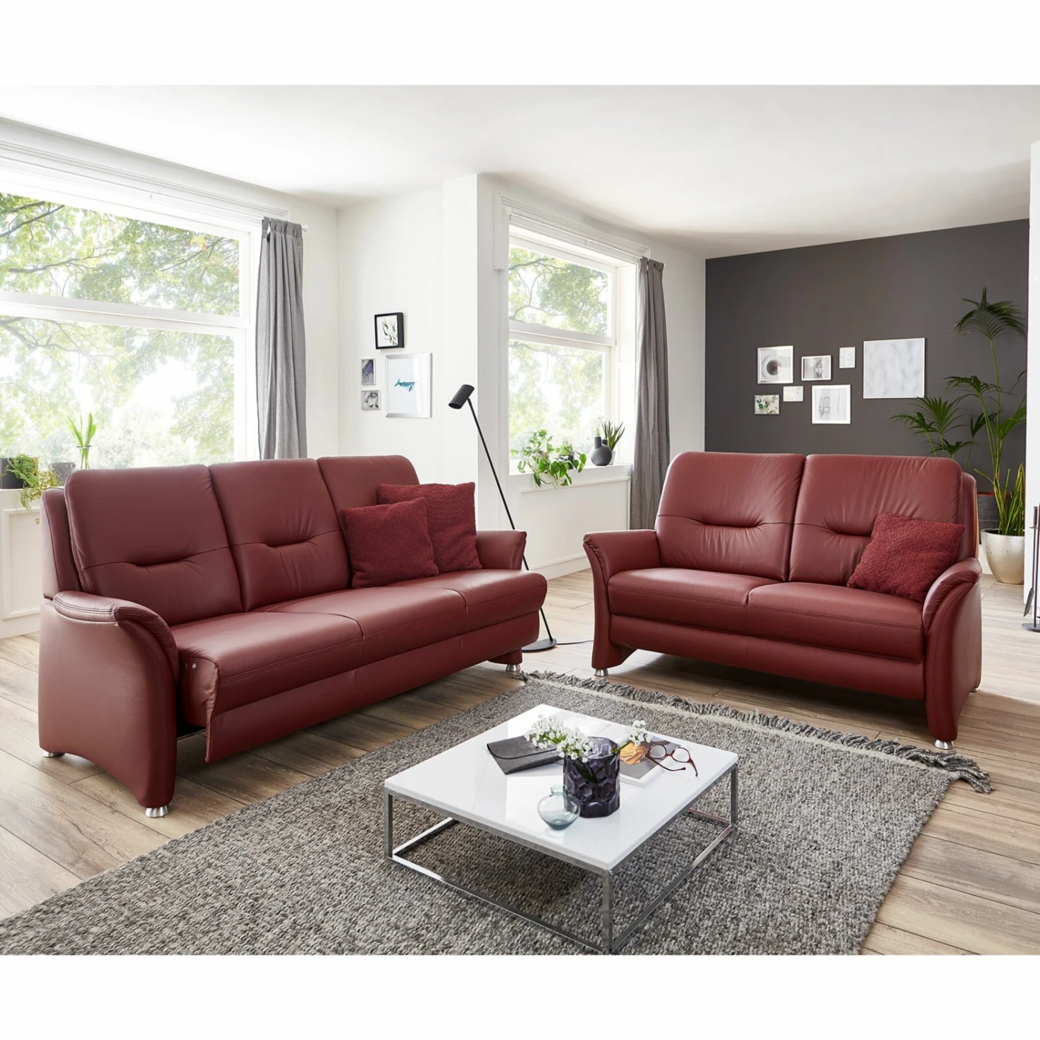 polsterpower 2,5-Sitzer Ledersofa – brombeer – Federkern