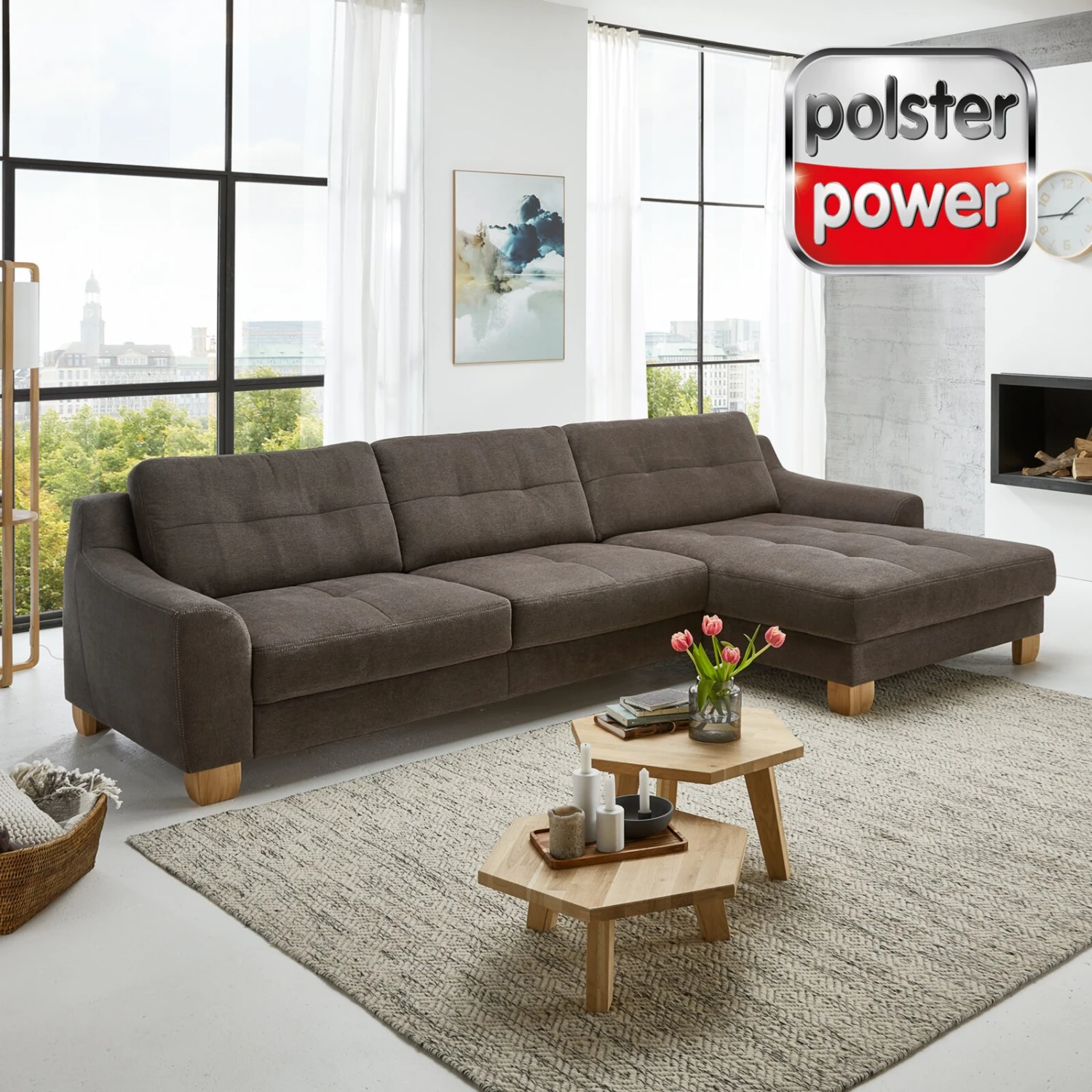polsterpower Ecksofa – anthrazit – Basismodell – Canapé rechts