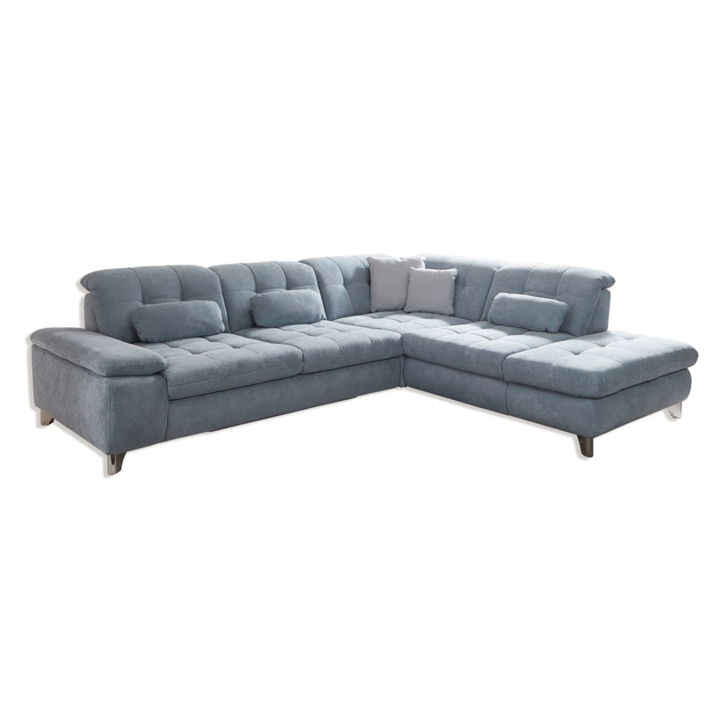 polsterpower Ecksofa – blau – Basismodell – Anstellhocker rechts