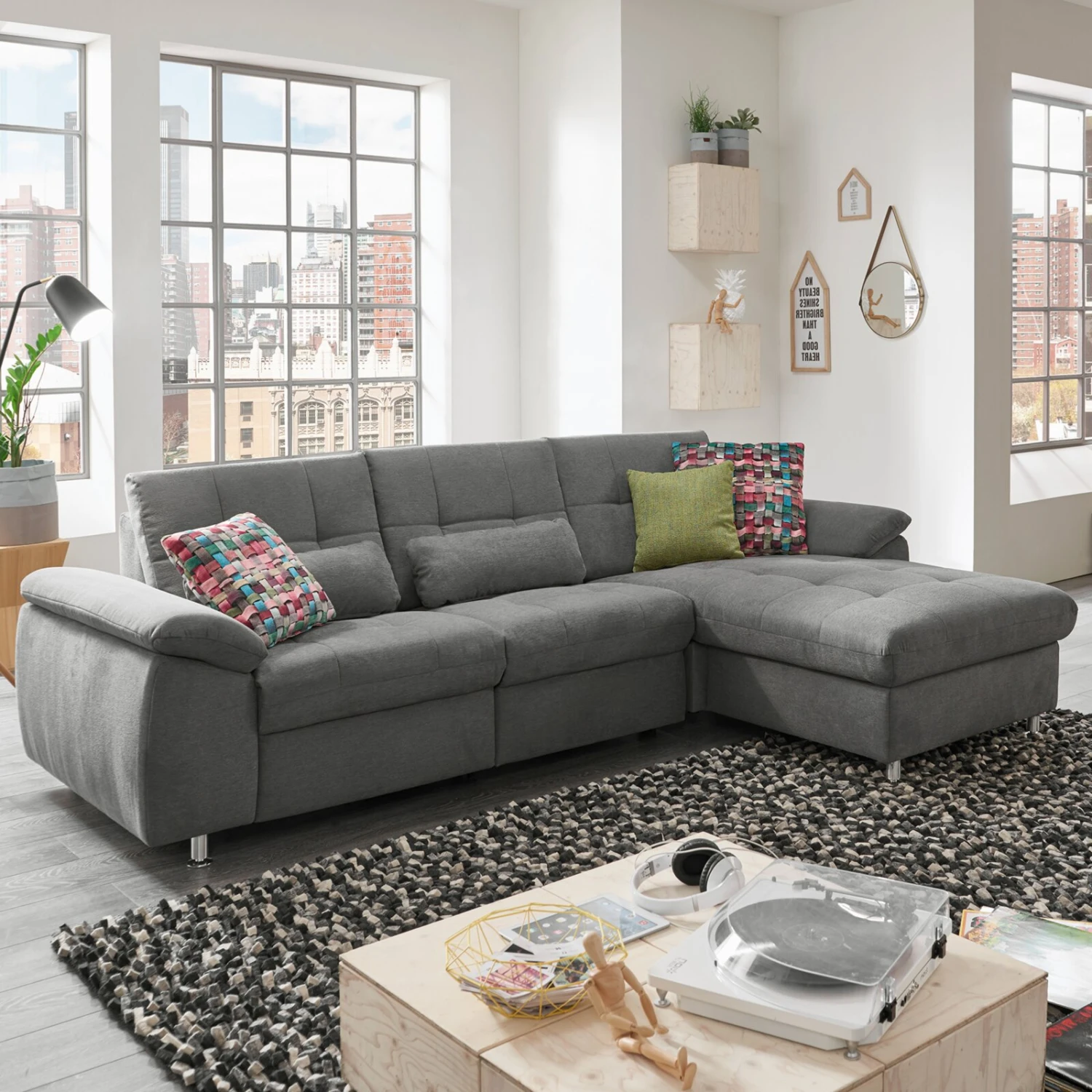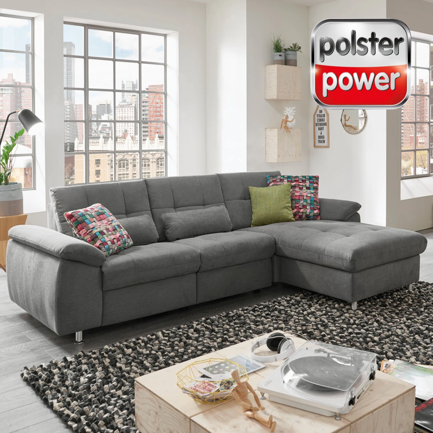 polsterpower Ecksofa – grau – Basismodell – Canapé rechts