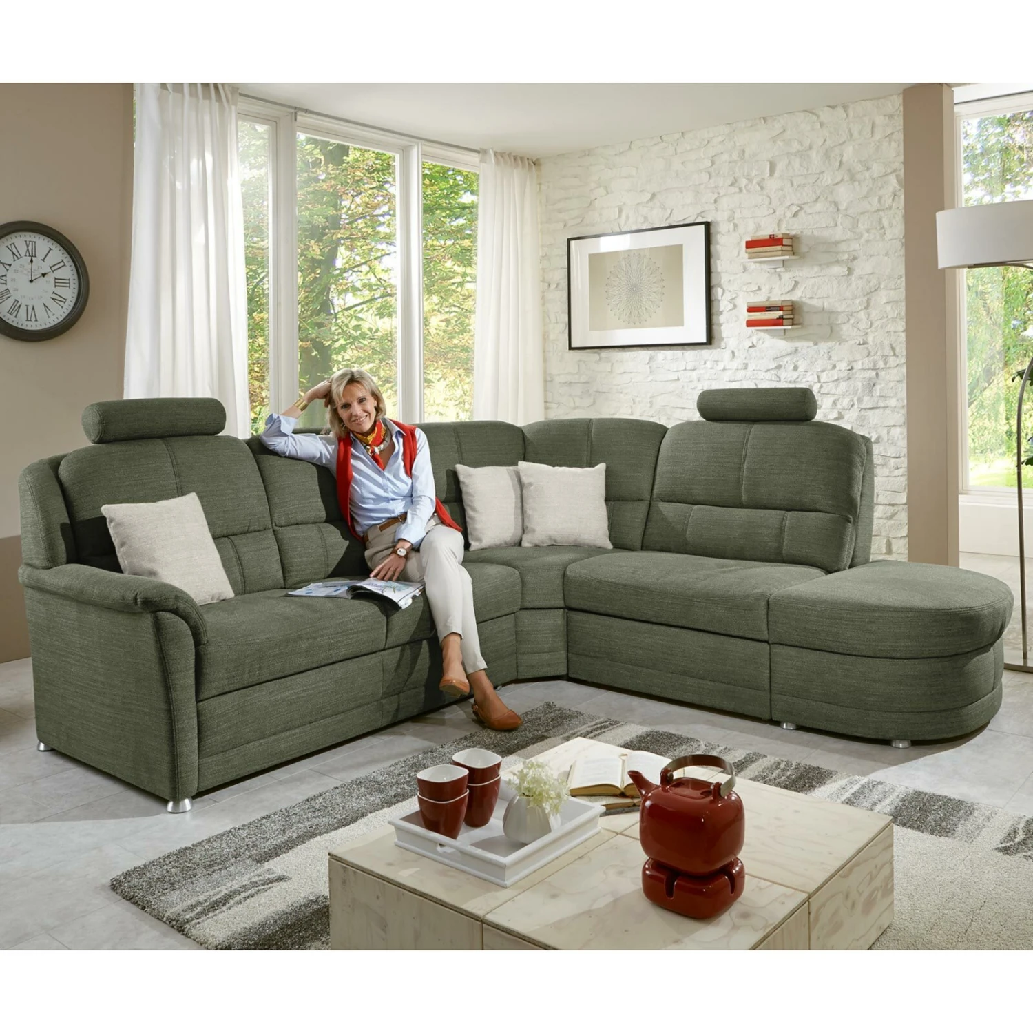 Dieses bequeme Ecksofa in traumhaft schönem Grün kann der neue Mittelpunkt Ihres Wohnzimmers werden. Seinen Komfortfaktor erhält das Sofa durch die Kombination aus Super-Bonell-Federkern und Polyätherschaum sowie der Wellenunterfederung. Der Bezug aus Microchenille ist besonders hautfreundlich und kuschelweich und passt durch seine Farbgebung ideal in viele unterschiedliche Einrichtungsstile. Ein fest verbauter Anstellhocker rechts verlängert die Komfortfläche, so dass Sie ausreichend Platz haben, um es sich gemütlich machen zu können.