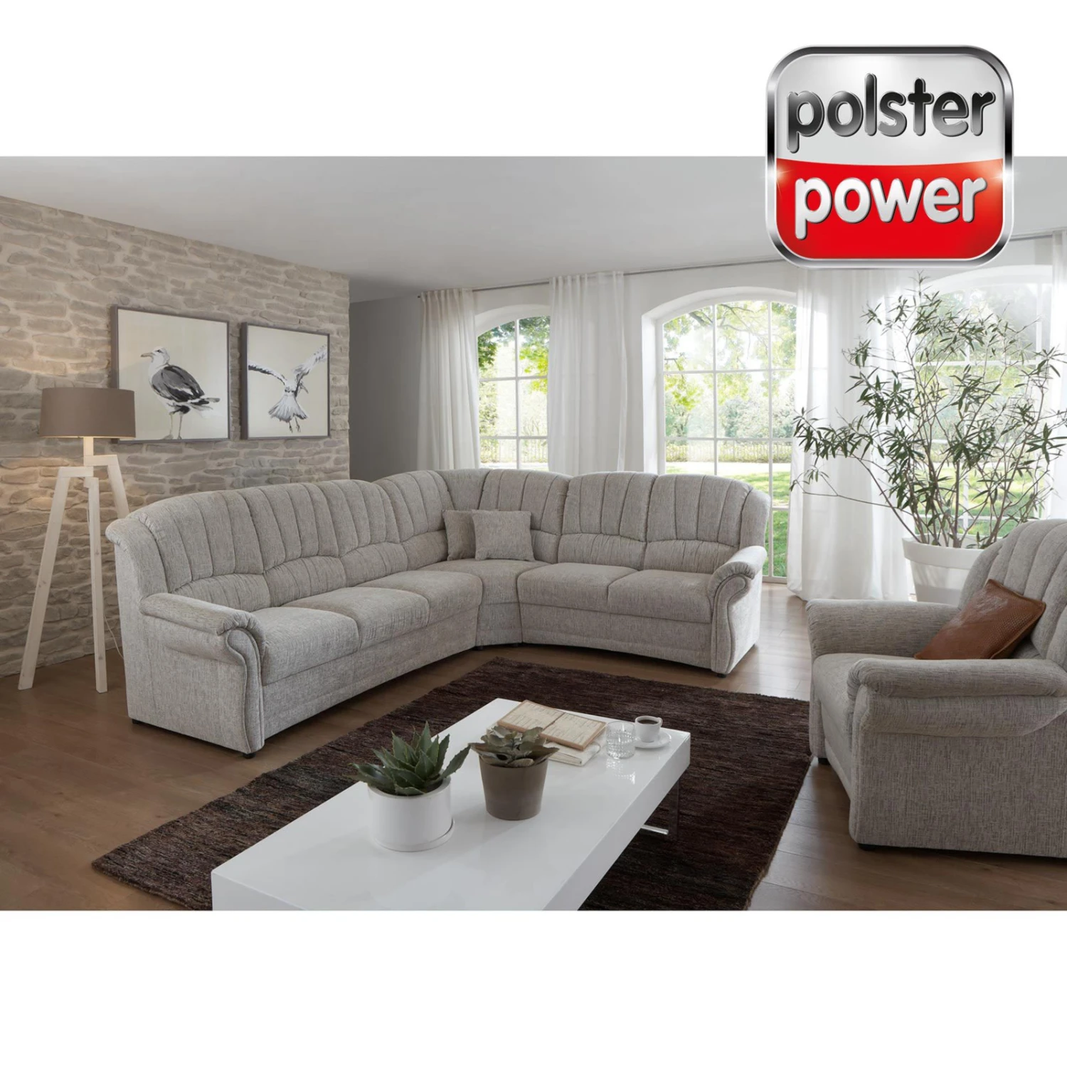 polsterpower Ecksofa – mandel – 2-Sitzer rechts