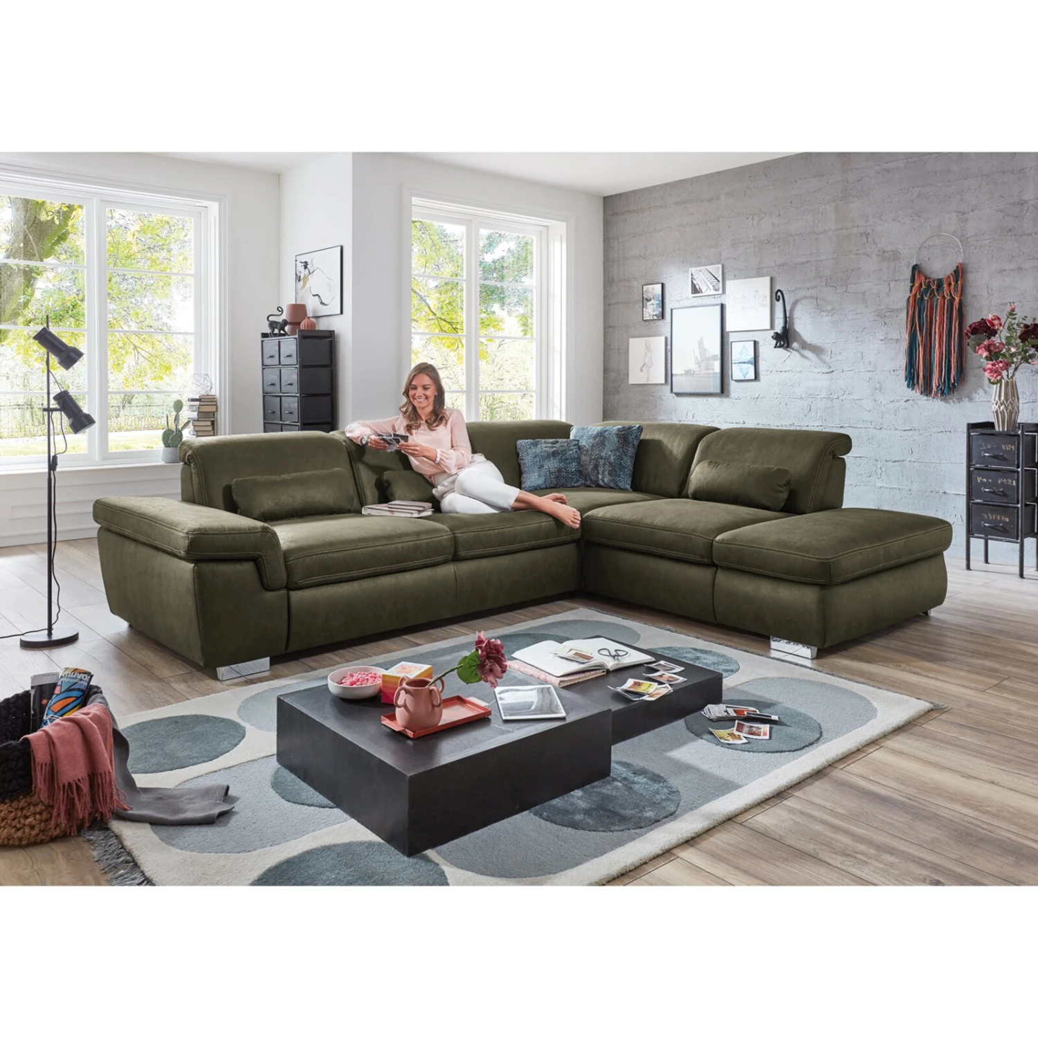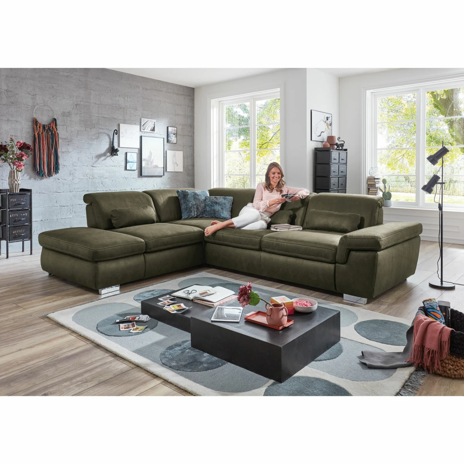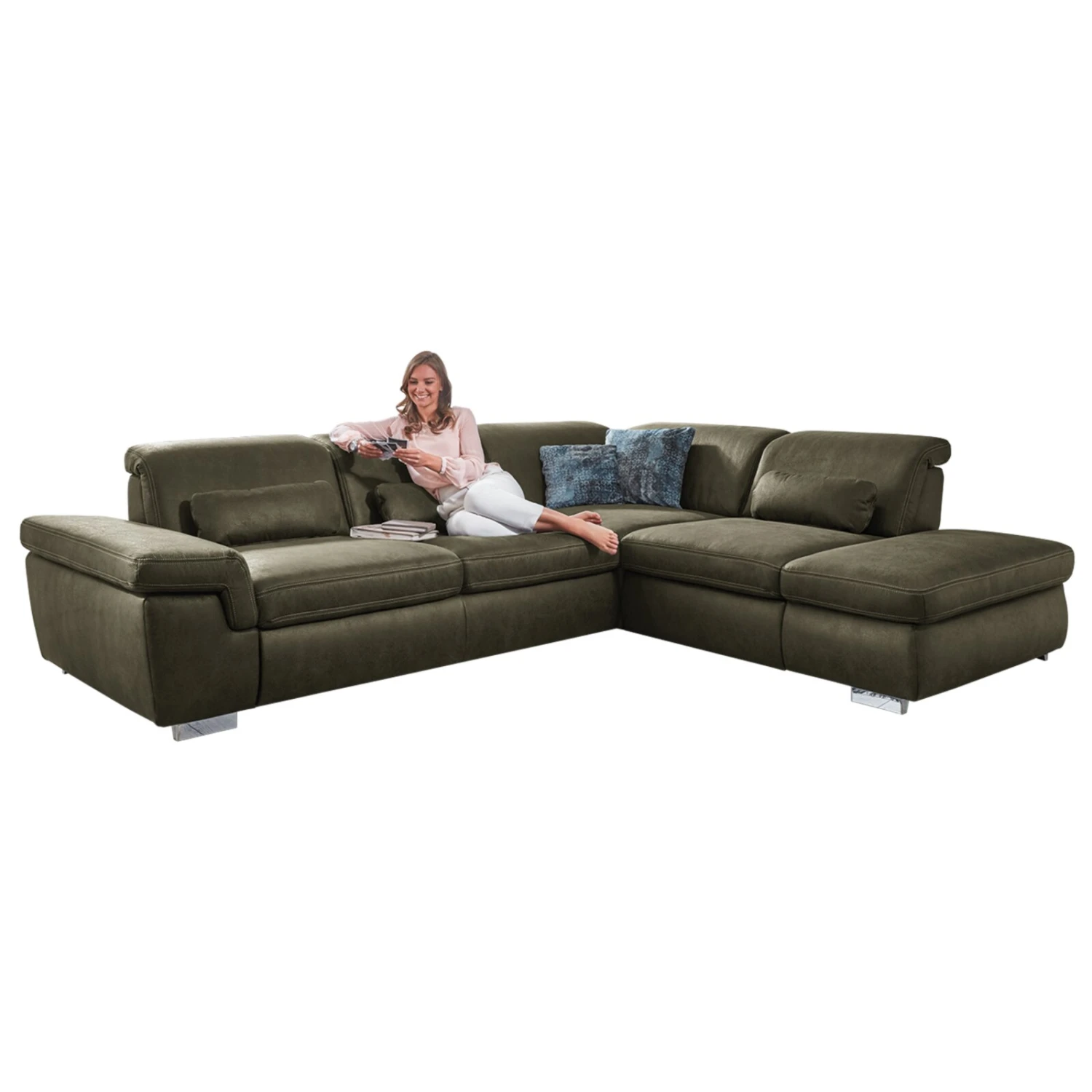 polsterpower Ecksofa – moosgrün – Sitztiefenverstellung