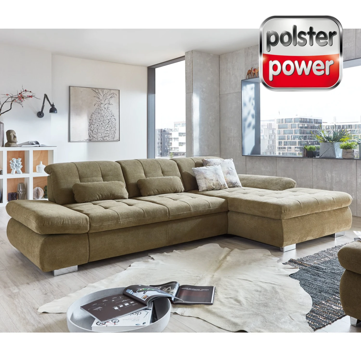polsterpower Ecksofa – olivgrün – Basismodell – Canapé rechts