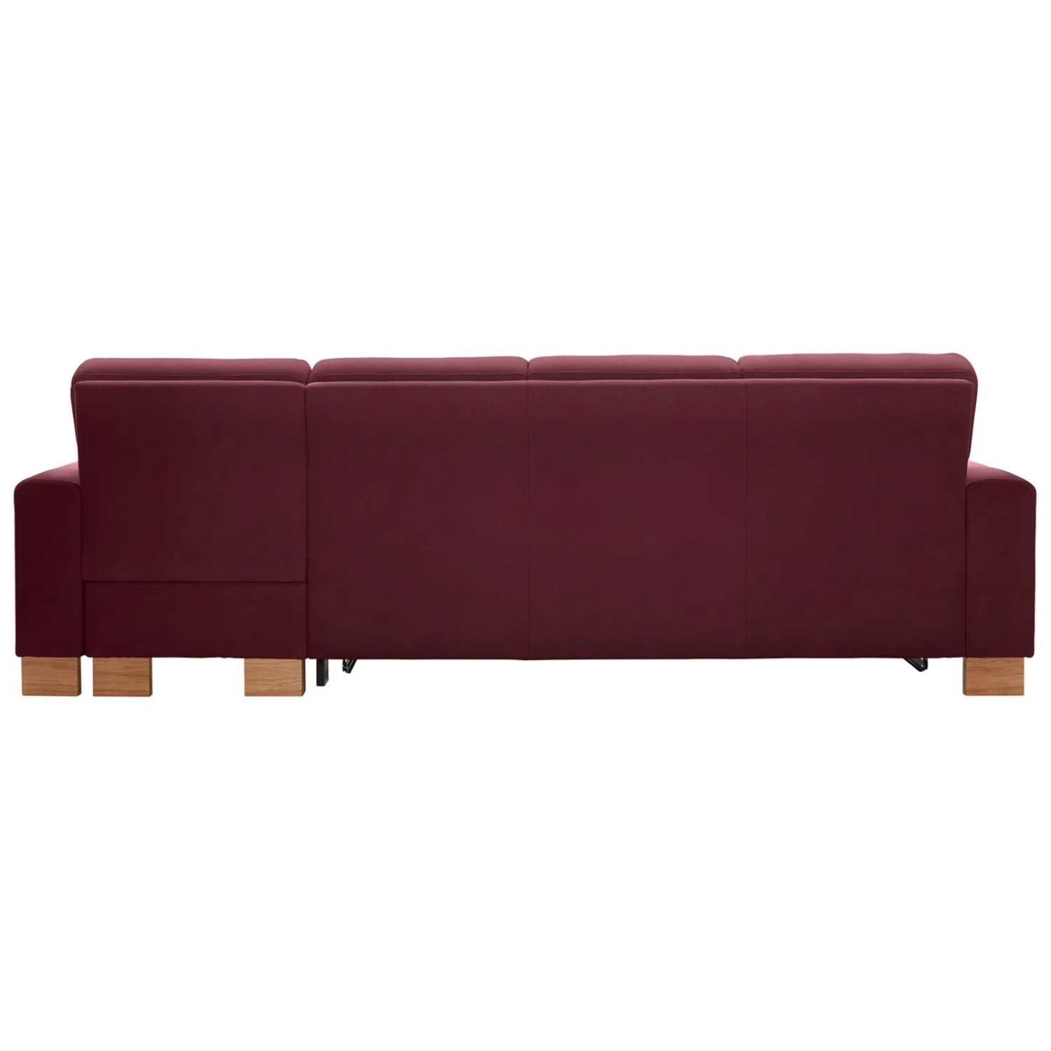Dieses moderne Ecksofa in Saddle Bordeaux sorgt für einen hervorragenden Komfort und bietet reichlich Platz für gemütliche Filmabende. Der Microfaserbezug aus 100% Polyester ist strapazierfähig und pflegeleicht. Die Holzfüße in Eiche bianco runden das Gesamtbild ab.
