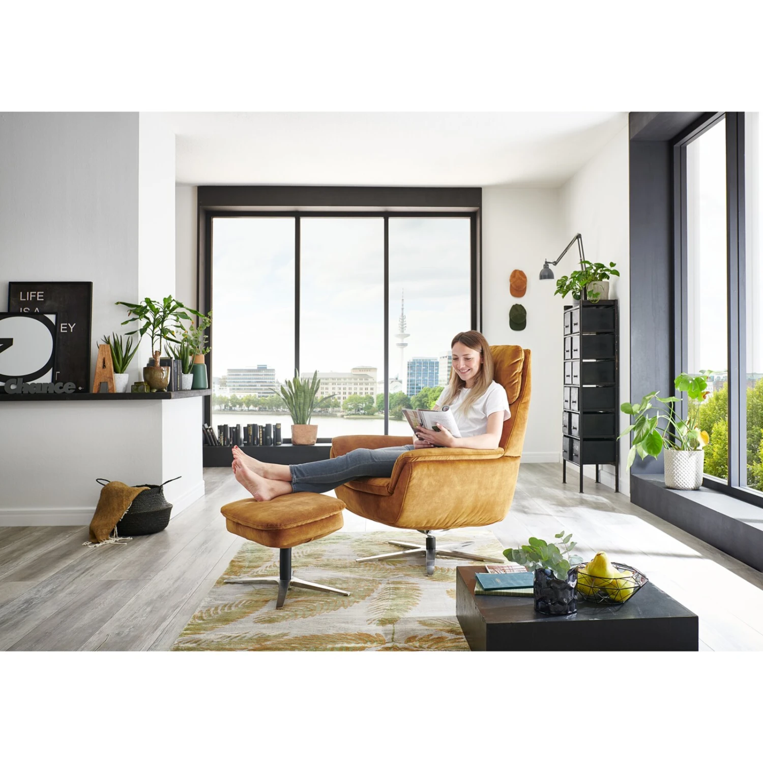 Farbenfroher Relaxsessel, der in einem wunderschönen Amira Gold daherkommt. Besonders an dem Relaxsessel ist die Drehbarkeit um 360°. Der Veloursbezug ist sehr weich und flauschig. Mach es dir mit diesem Relaxsessel bei deinem nächsten Fernsehabend so richtig gemütlich!