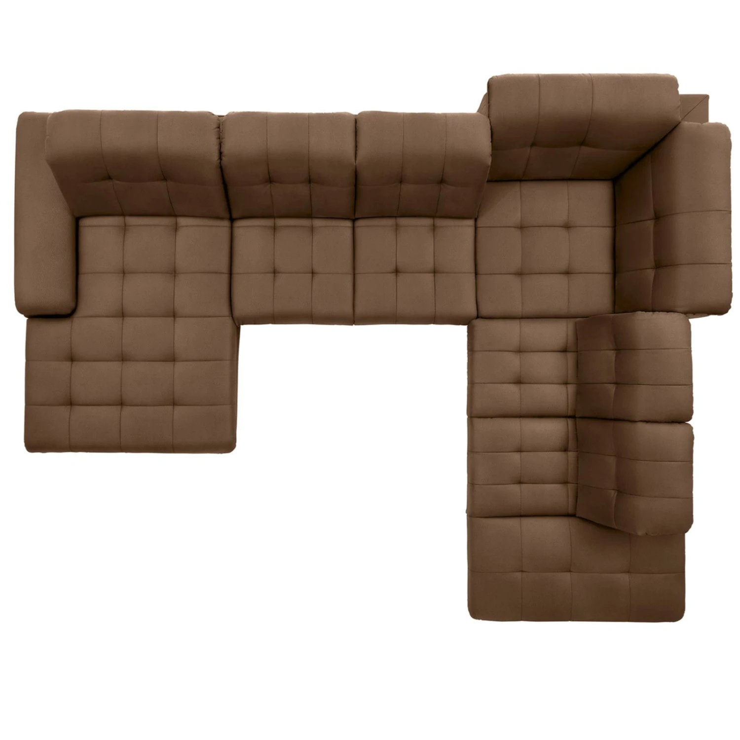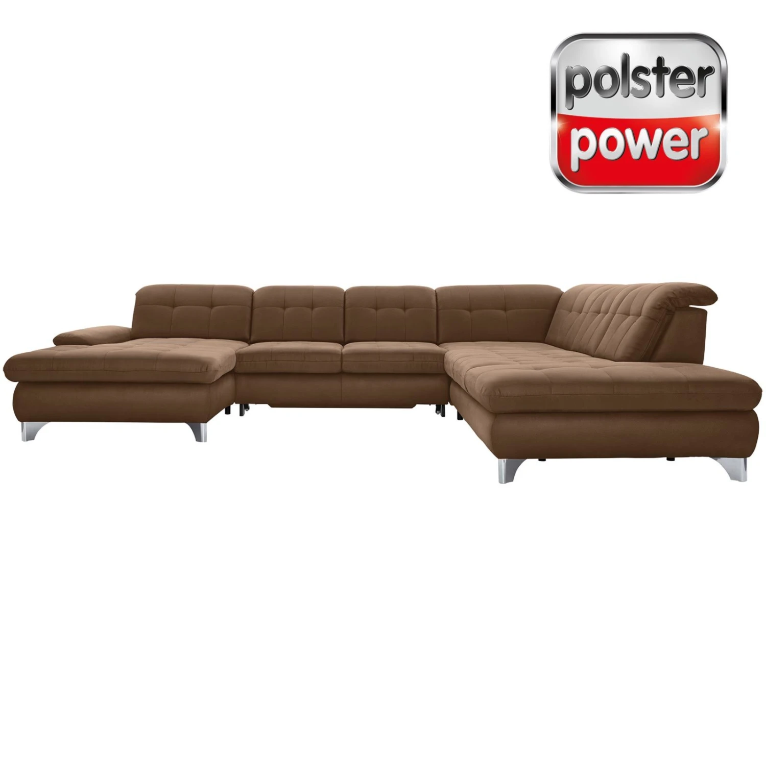 Diese moderne Wohnlandschaft in der Farbe Holiday mandel lässt Ihr Wohnzimmer in neuem Glanz erstrahlen und wird Ihren Wonhraum verschönern. Ihr stillvolles und gleichzeitig zeitloses Design fügt sich bestens in viele Einrichtungsstile ein. Durch die Recamiere wird genügend Platz zum Entspannen und Erholen geboten. Die integrierte Sitztiefenverstellung ermöglicht eine komfortable Anpassung je nach individuellem Bedürfnis. Für zusätzlichen Komfort gibt es einen fest integrierten Anstellhocker. Die Sitz- und Rückenfläche sind mit Kaltschaum gepolstert und zudem mit dem Originalstoff bezogen. Durch die Wellenunterfederung auf der Sitzfläche und elastische Polstergurte im Rücken wird ein bequemer Sitzkomfort gewährleistet.