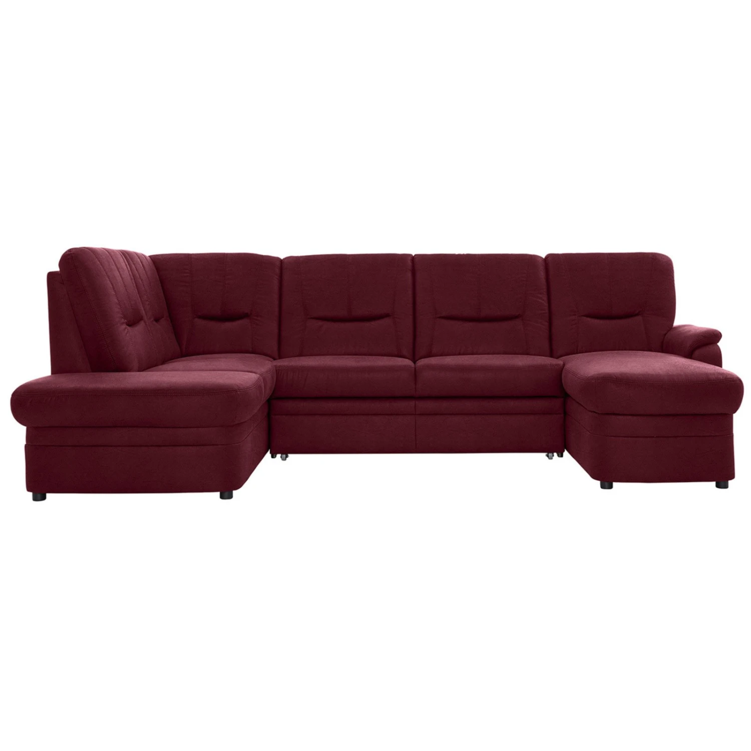 Mit dieser Wohnlandschaft in der Farbe Saddle bordeaux bringen Sie frischen Wind in Ihr Wohnzimmer. Das stillvolle und gleichzeitig zeitlose Design fügt sich bestens in viele Einrichtungsstile ein. Durch die Recamiere bietet sich genügend Platz zum Entspannen und Erholen. Für zusätzlichen Komfort gibt es einen fest integrierten Anstellhocker. Die Sitz- und Rückenfläche sind mit einem Federkern und Polyätherschaum gepolstert und zudem mit dem Originalstoff bezogen. Durch die Wellenunterfederung auf der Sitzfläche und elastische Polstergurte im Rücken wird ein bequemer Sitzkomfort gewährleistet.