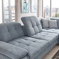 polsterpower Ecksofa – blau – Basismodell – Anstellhocker rechts
