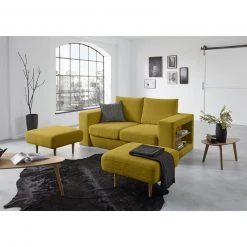 Sofa mit 2 Hockern – LOOKS by Wolfgang Joop – senf – Armlehne mit Regal – 172 cm