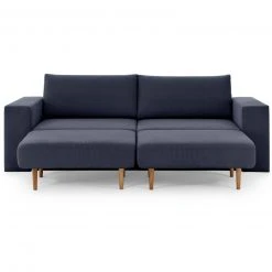 Sofa mit 2 Hockern – LOOKS by Wolfgang Joop – dunkelblau – Armlehne mit Regal – 172 cm
