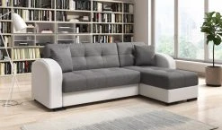 Ecksofa – weiß-anthrazit – mit Schlaffunktion und Bettkasten