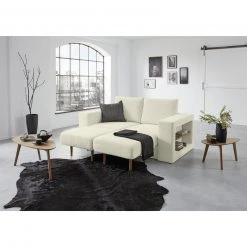 Sofa mit 2 Hockern – LOOKS by Wolfgang Joop – creme – Armlehne mit Regal – 172 cm
