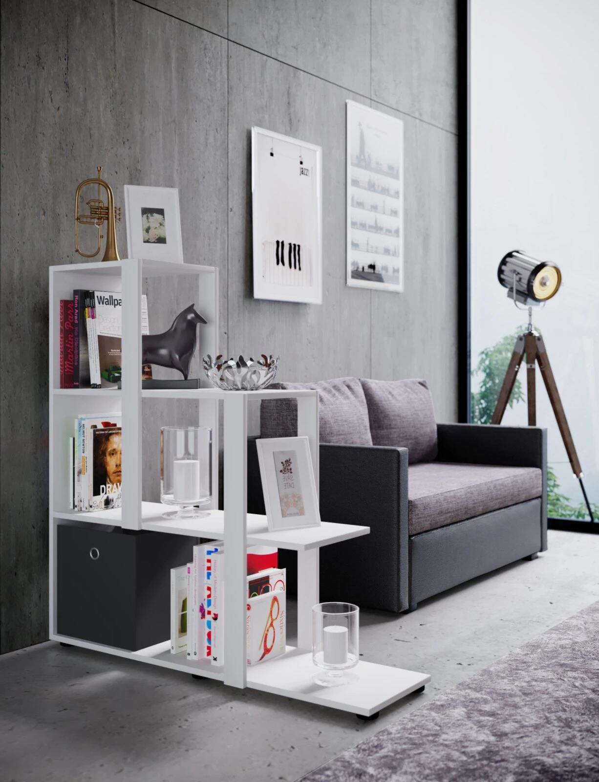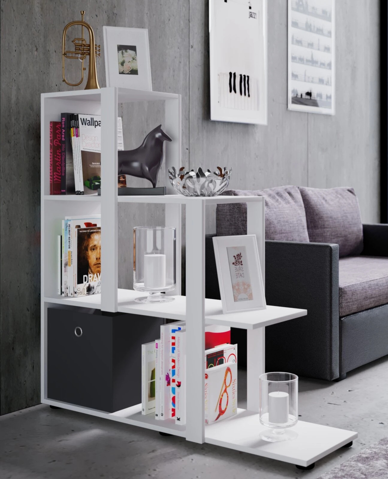 Der stylische Raumteiler SLANDO in weißer Ausführung. Bringen Sie frischen Wind in Ihr Wohnambiente mit diesem modernen Raumteiler. Er wird Ihnen neue Möglichkeiten eröffnen, Ihre liebsten Dekostücke und Accessoires auf insgesamt drei Ebenen gekonnt in Szene zu setzen und zu präsentieren. Ein absoluter Blickfang und die beste Alternative, wenn Sie Ihre Räumlichkeiten mit Stil aufteilen wollen .