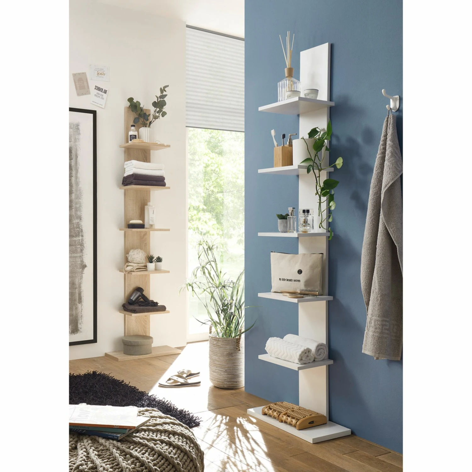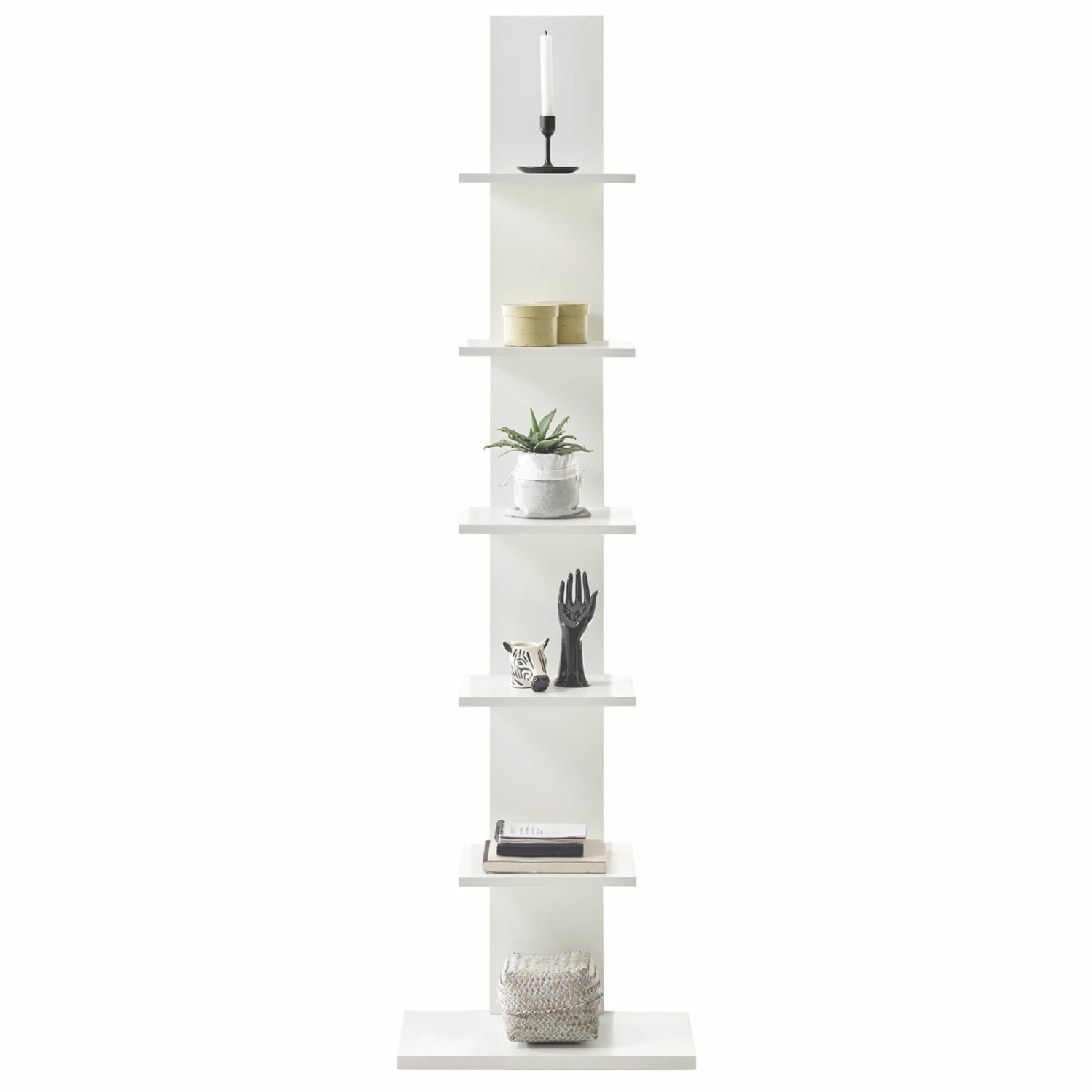Auf diesem etwa 180 Zentimeter hohen Regal kann Ihre Dekoration in Szene gesetzt werden. Die weiße Farbausführung lässt sich bestens mit den verschiedensten Einrichtungsstilen kombinieren. Das Regal kann vielseitig eingestezt werden, ob Wohnraum, Arbeits- oder Kinderzimmer.