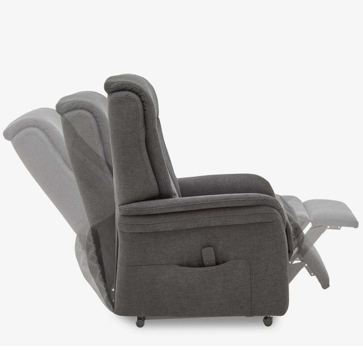Trotz starker Belastung hoher Belastung nehmen wir Menschen uns immer seltener eine Auszeit. Mit diesem Relaxsessel können Sie die Verlockung erhöhen. An die Rationalisten: Damit bringen Sie Ihre Erholung und den Komfort auf ein Maxmimum. Unterstützt wird dies durch die Federkern-Polsterung ummantelt mit hochwertigem Polyätherschaum. Dieser findet sich auch in der Rückenlehne und den Armteilen wieder. Durch den E-Motor und die zusätzliche Aufstehhilfe können Sie die Rückenlehne und die Beinauflage mithilfe einer mitgelieferten Fernbedienung stufenlos und synchron in die ideale Relaxposition bringen. Damit der Entspannung nichts mehr im Weg steht, kann diese in der praktischen Seitentasche verstaut werden. Diese Ausführung in der Ergonomiegröße large bietet mit einer großen Rückenlehne eine ideale Passform für große Personen. Bitte wählen Sie die Größe abhängig von Ihrer Körpergröße aus. Die Relaxsessel sind auch in den Größen medium und small bei Roller erhältlich. Orientieren Sie sich dabei bitte an den Maßen der Rückenlehne.