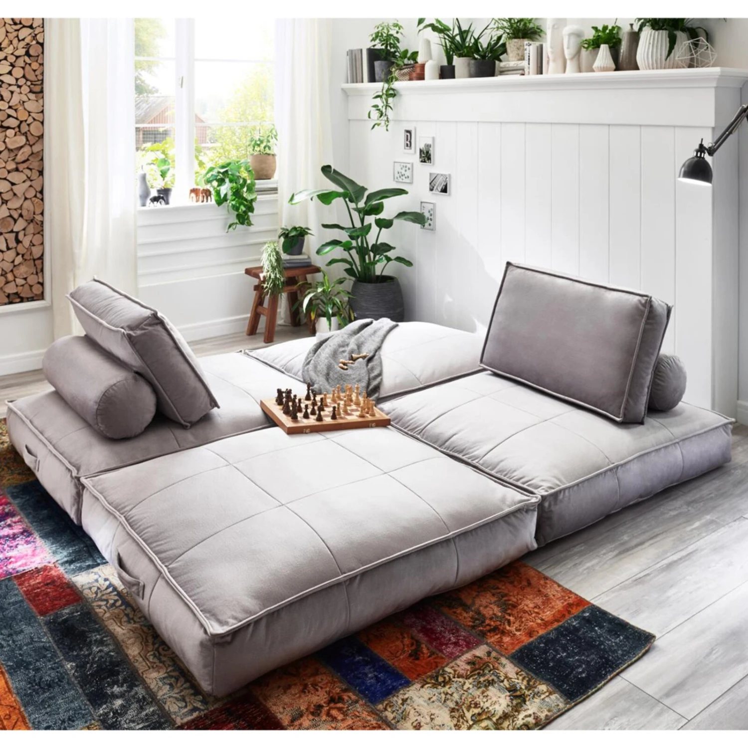 Relaxsessel – hellgrau – Samtvelours – mit Kissen